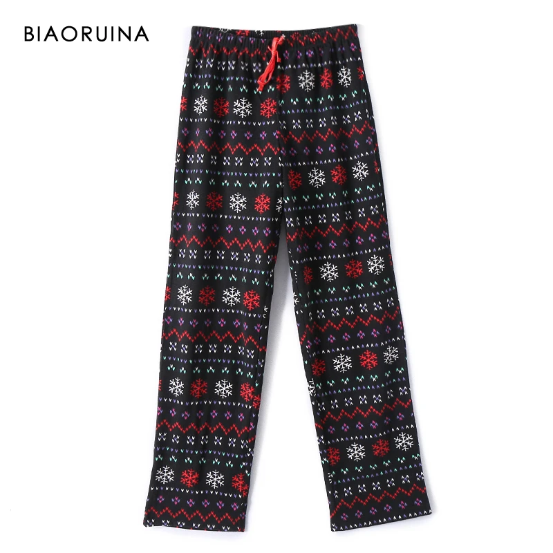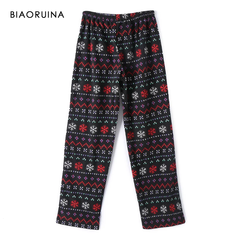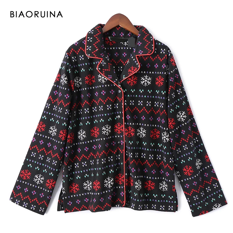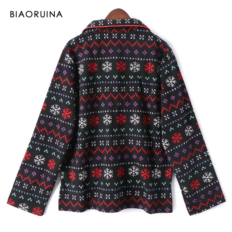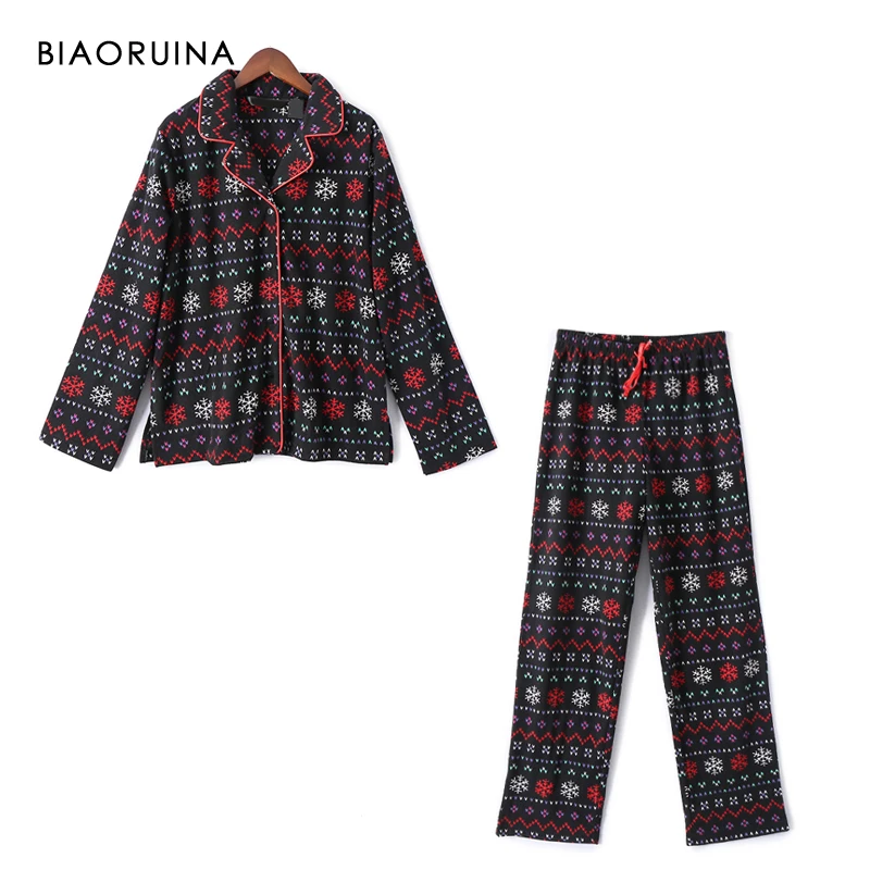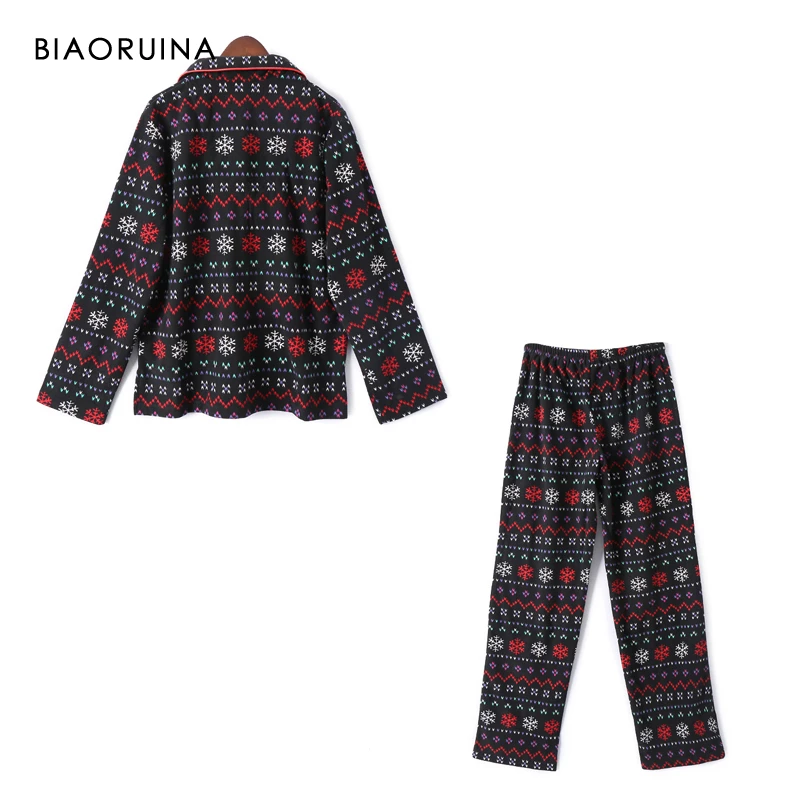 BIAORUINA для женщин флис Снежинка печатных свободные пижамный комплект однобортный повседневные топы + эластичный пояс полной длины брюки из двух частей