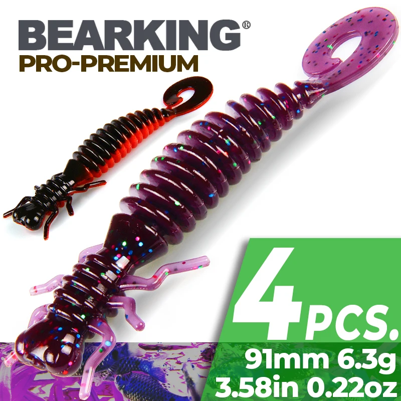 BEARKING 9,1 см 6,3 г 4 шт. искусственные приманки для рыбалки Червячные силиконовые басы Щука гольян плавающая приманка джигггинг пластиковые приманки