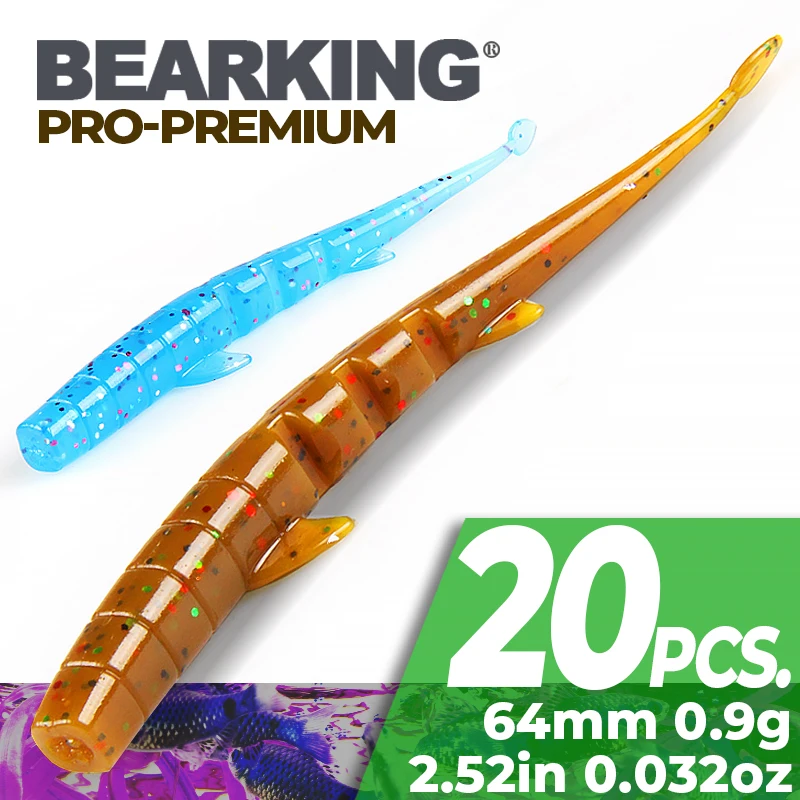Рыболовные приманки BEARKING, Искусственные воблеры, Мягкие силиконовые, для ловли карпа, 20 шт., 64 мм, 0,9 г