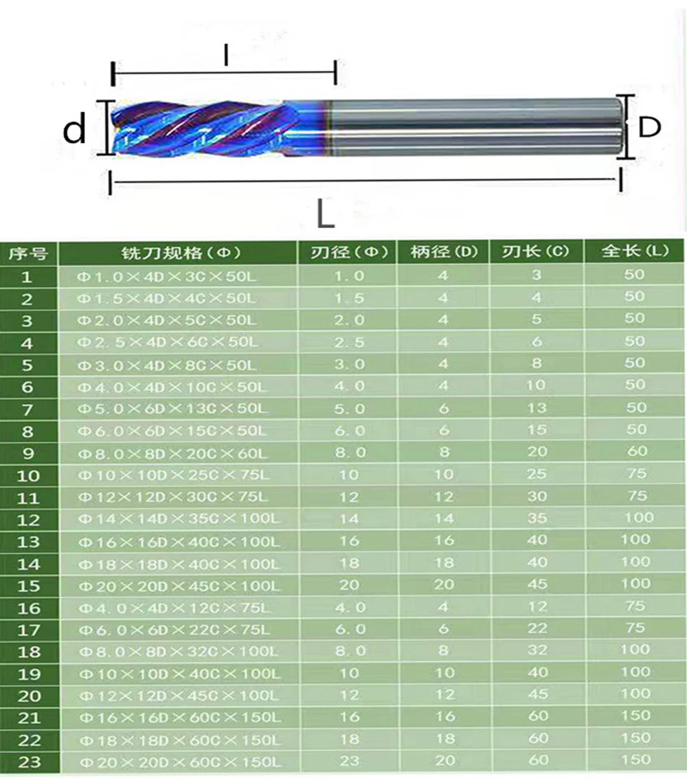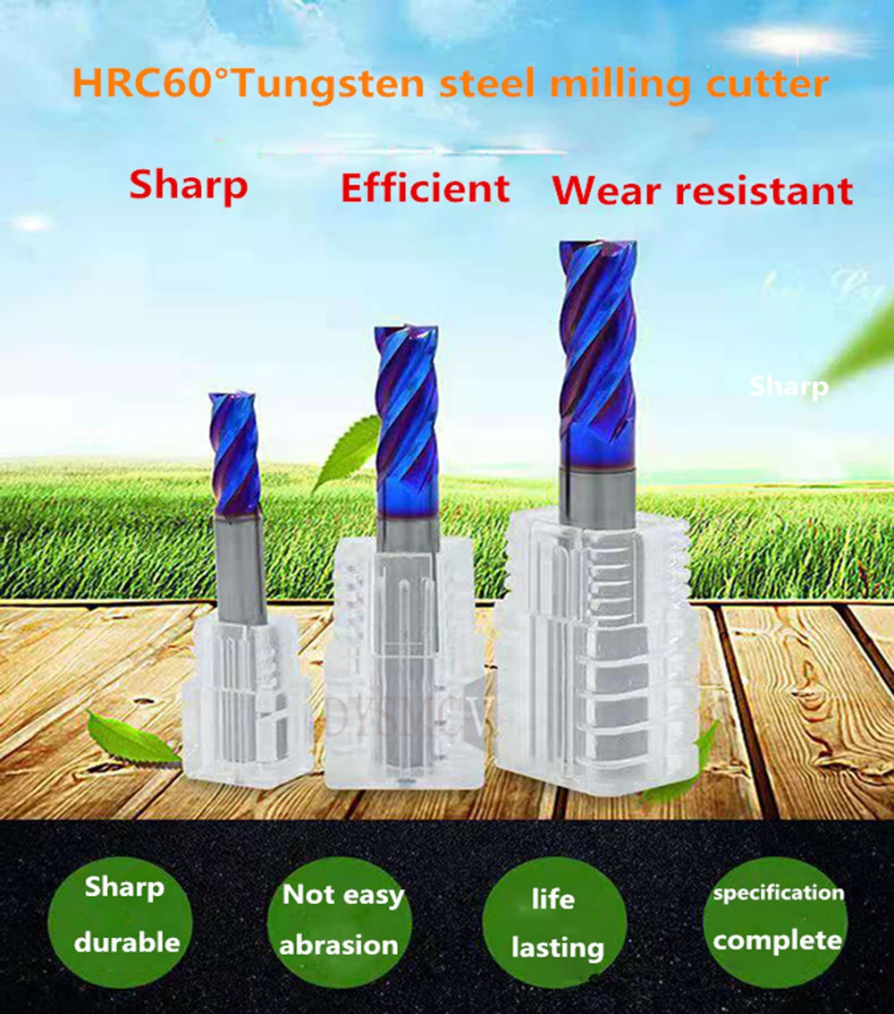 Концевая фреза из карбида вольфрама, HRC65, 4 канавки, 1 мм, 1,5 мм, 2 мм, 2,5 мм, 3 мм, 4 мм, 5 мм, 6 мм * 50 л