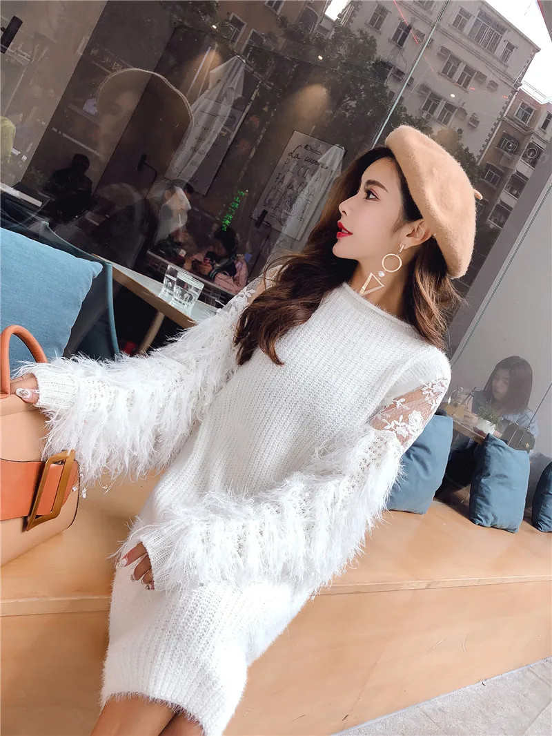 Мохеровые свитера, платья, женские зимние вязаные платья, теплые мягкие мохеровые платья, женские платья с кисточками
