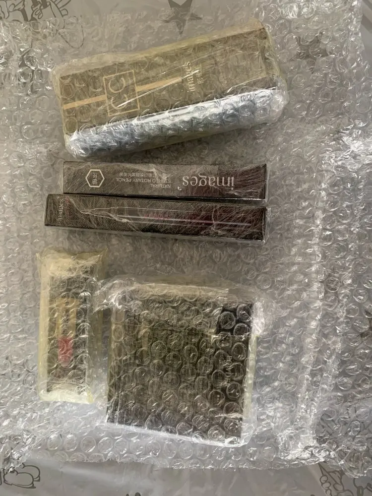 Товар пришел согласно описанию. Карандаш для бровей - черный. Всё очень хорошо запечатано, прям в несколько слоев несколько раз. Но очень долгая доставка, почти 90 дней. Из-за длительной доставки и почты тональный крем расслоился. Остальное в хорошем состоянии и даже тени не побиты.