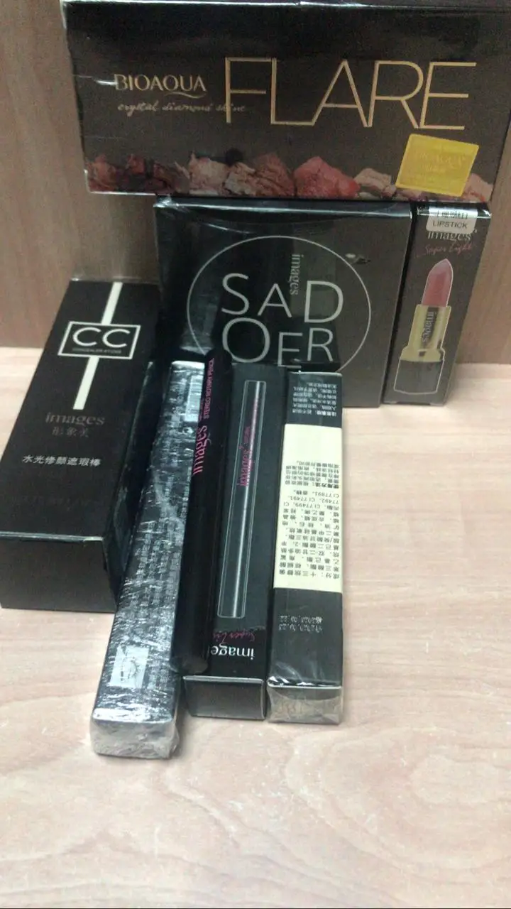 Ужасная покупка, очень жалею.Во-первых ждала посылку с 14 ноября,получила только 1 февраля.Во-вторых нет туши, нет коректора, нет теней, которые указаны на фото.Помада пахнет вообще ничем, непонятный тональник открывается не правильно, в итоге он весь вылился.Я очень недовольна!!!!Никому не советую, ужасный продавец, который во время спора даже никак не реагировал и не отвечал.За такие деньги это просто ужас.Не заказывайте, пожалеете!