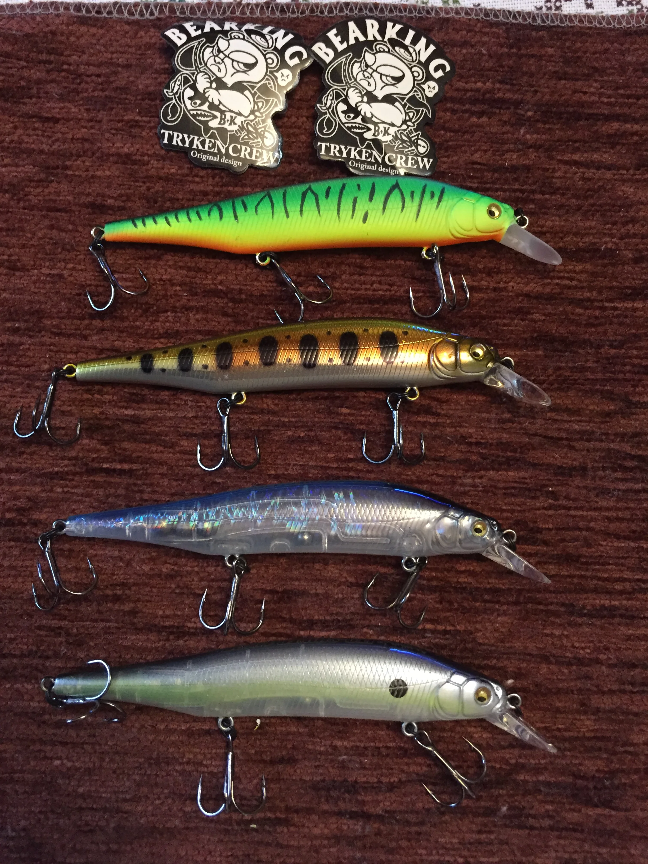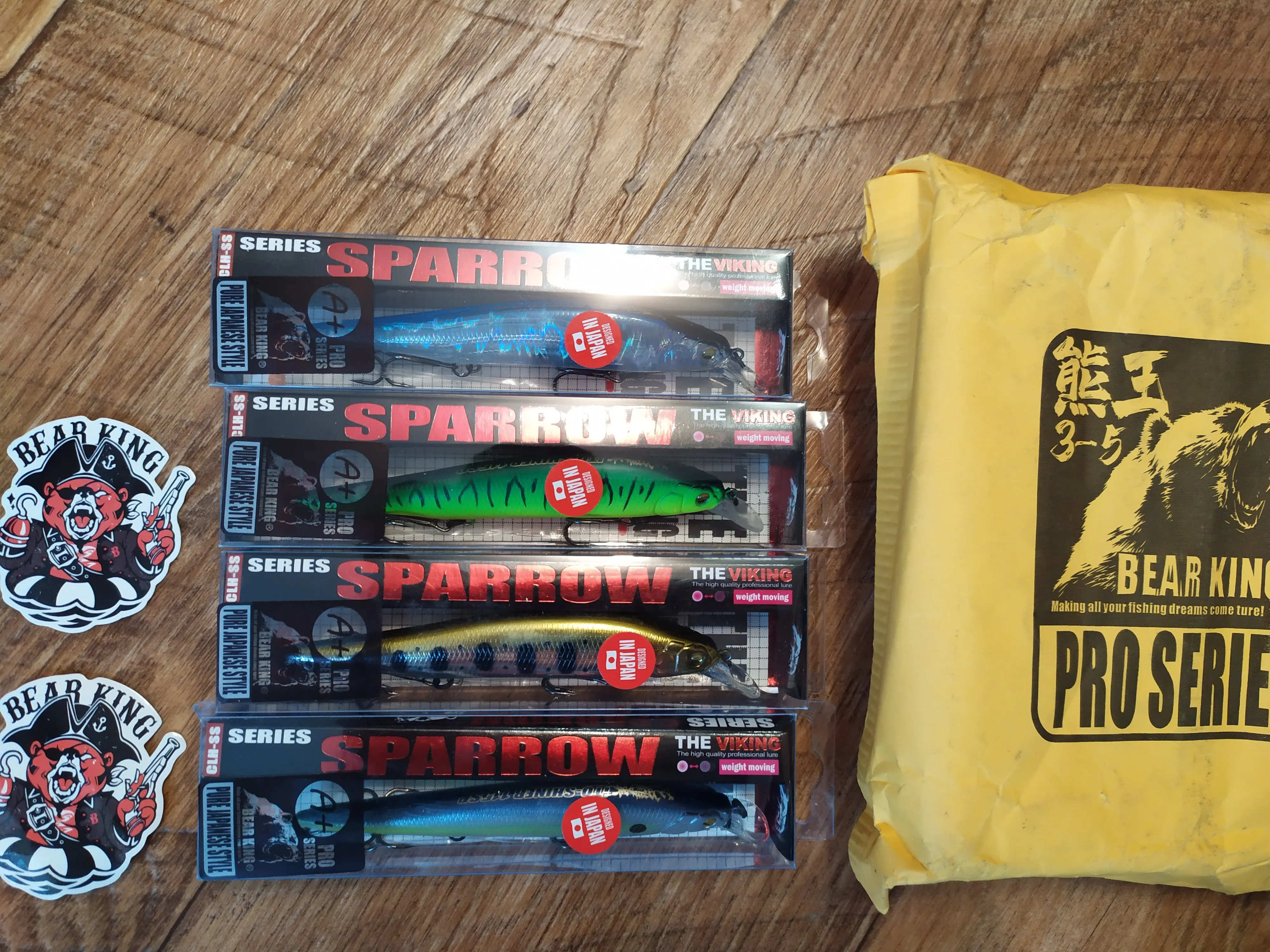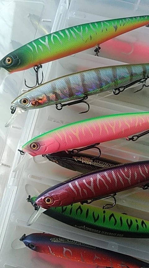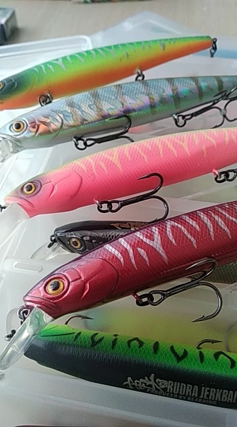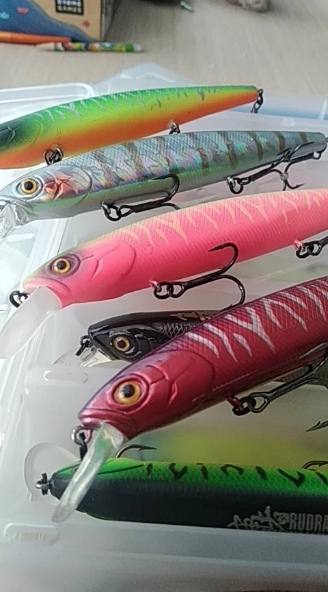 доставили очень быстро, за 2 недели. качество воблеров за несколько лет упало, но все равно это один из лучших вариантов. кольца и почти все тройники на замену, проклеивать не нужно. на одном присутствует маленькшая вмятина и есть потертости, маркировка на спине на нескольких воблерах размыта