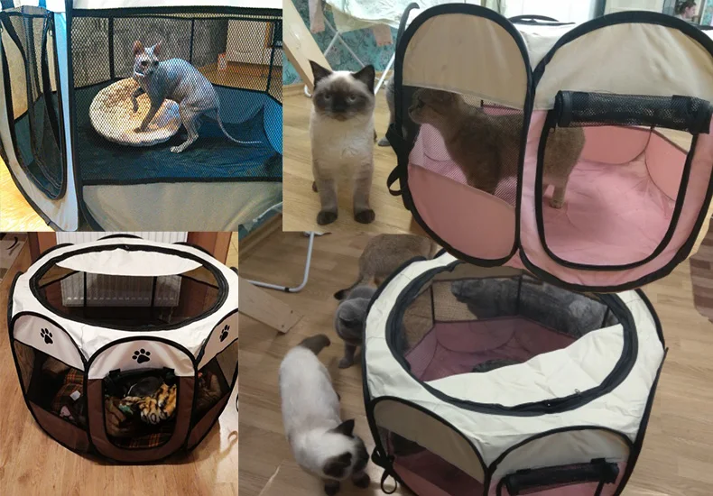 Переносная складная палатка-переноска для животных, манеж, дышащий, удобный в эксплуатации, восьмиугольный забор, съемная Лежанка для щенков, для кошек