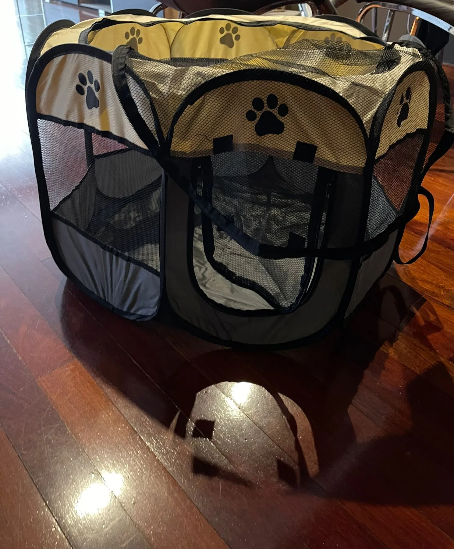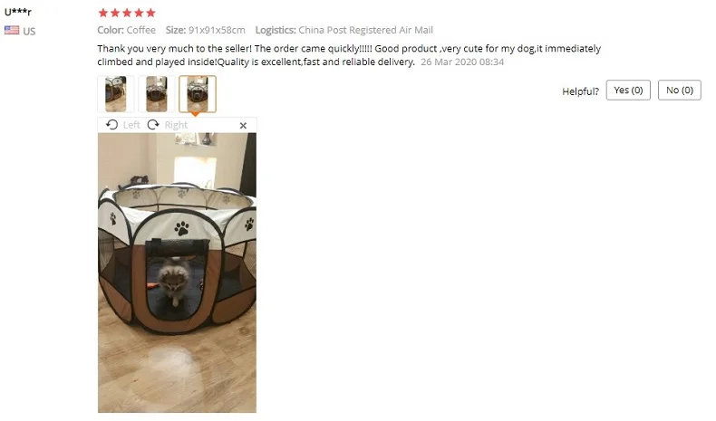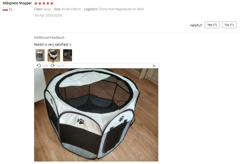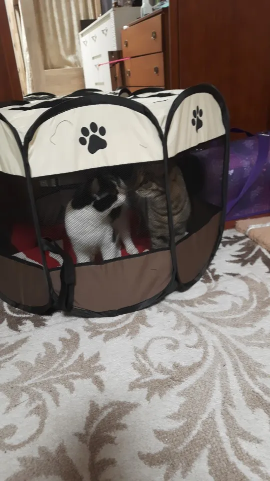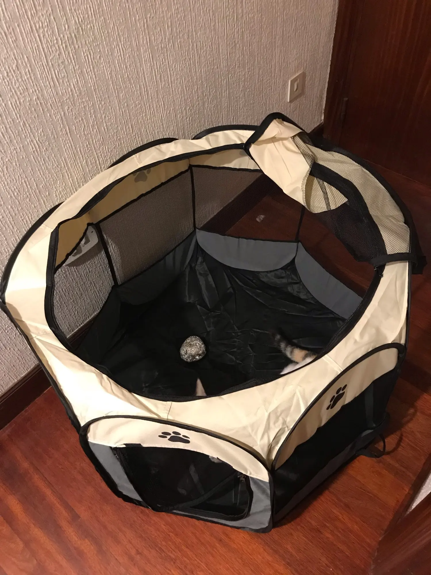 Это произошло очень быстро. Это как описано. Это портативный трафарет, который легко складывается, подходит для домашних животных, не очень больших, кажется практичным