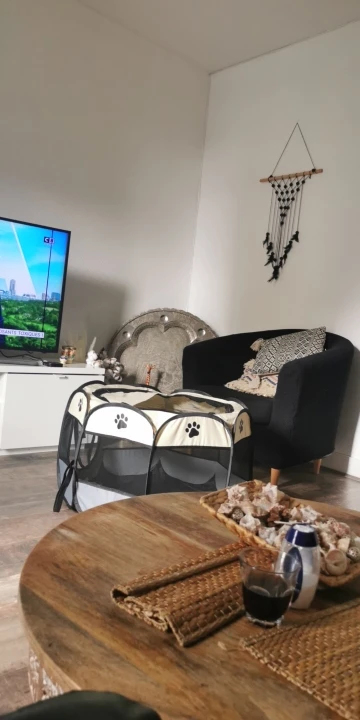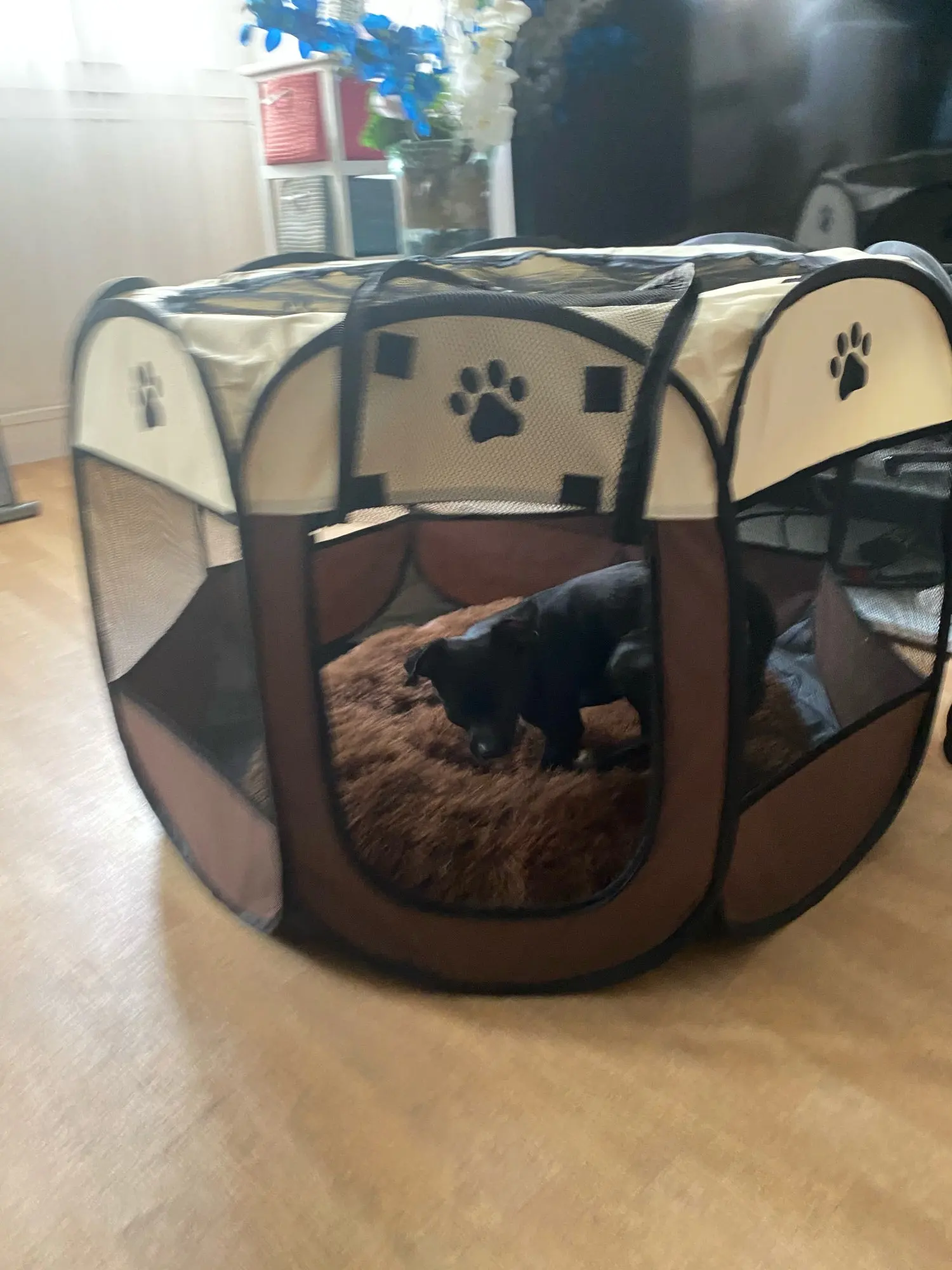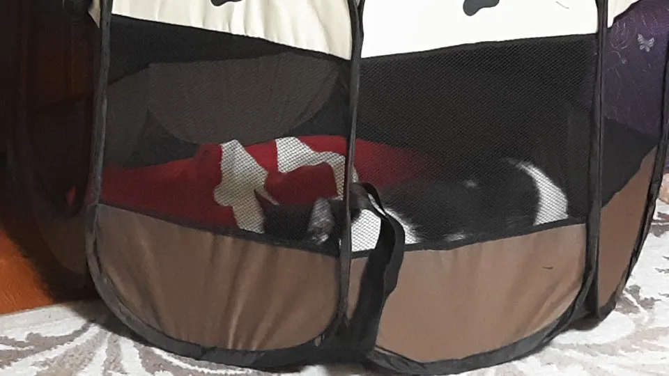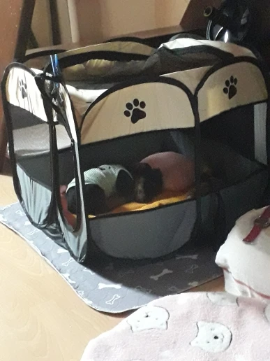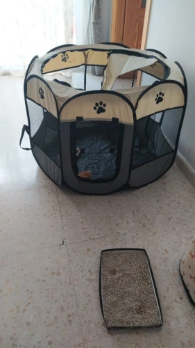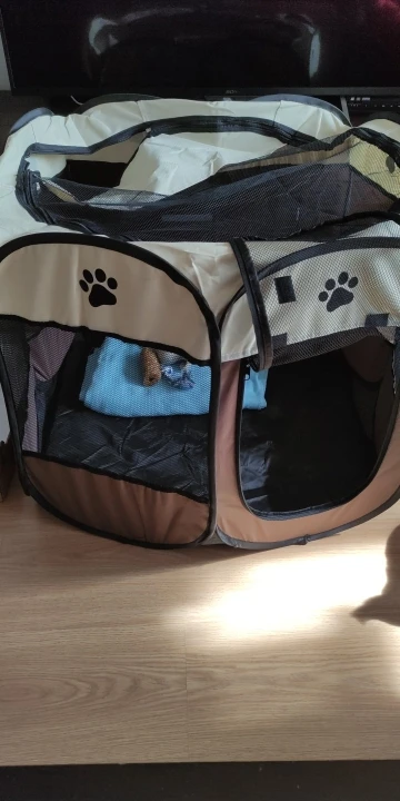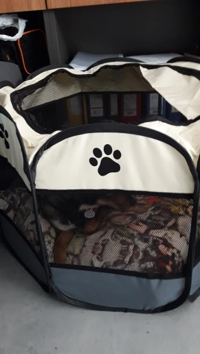 Это хорошо, но для небольшого собаки это не стоит много, потому что он сразу разбирается, мы складываем его, и я могу оставаться закрытым между панелями. Это случилось с моей собакой