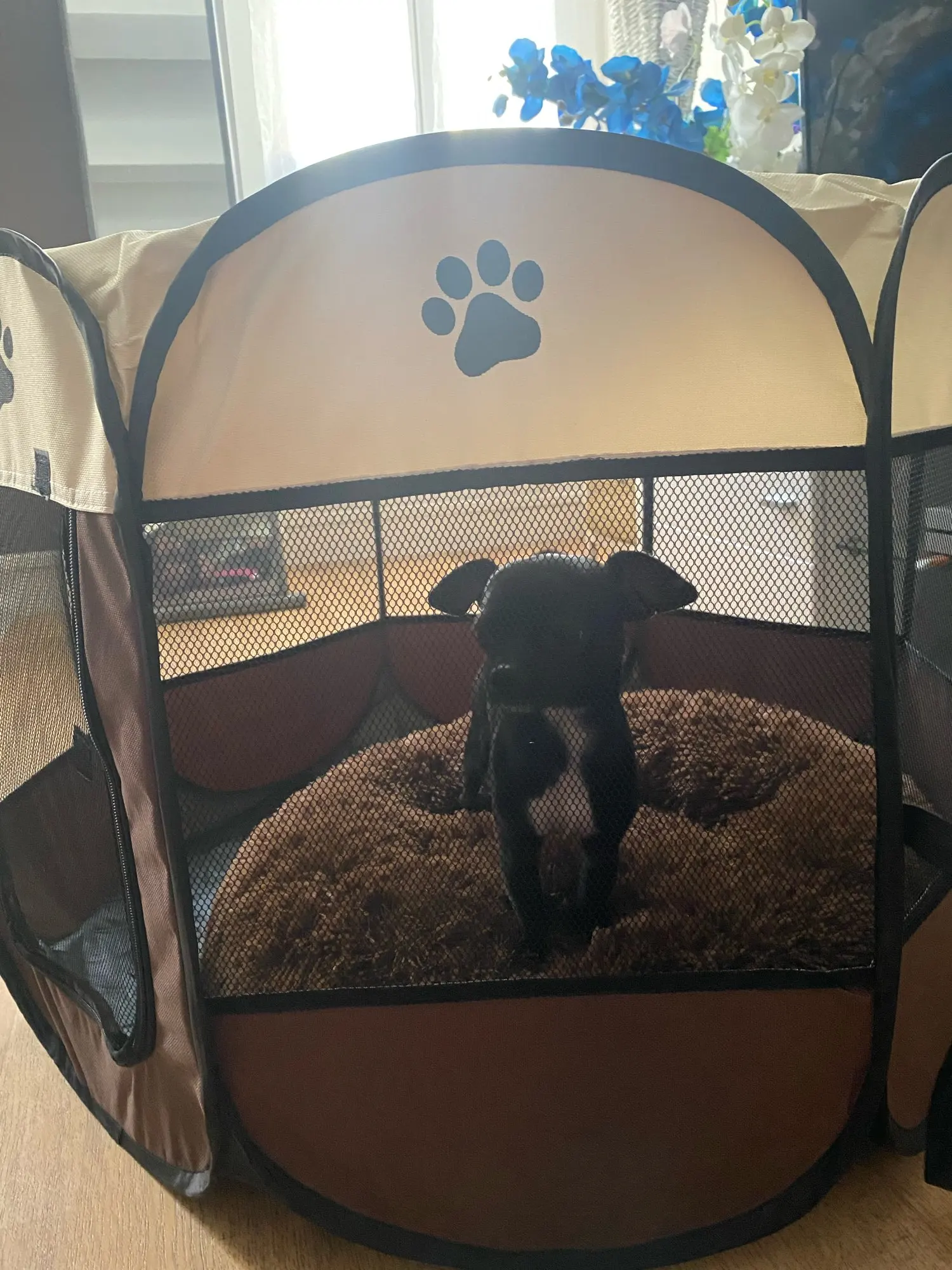 Полученный в течение расчетного времени, это очень хорошо, но моя собака хочет выйти все время, поцарапав и кража, вы дотронулись до меня, чтобы вытащить его, но для спокойных собак и щенков это очень хорошо.
