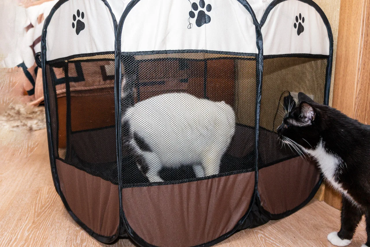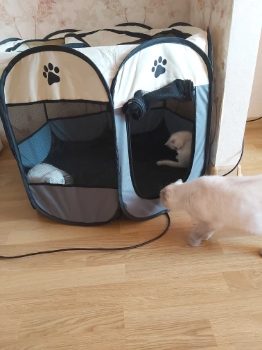 доставка мега быстрая, буквально на третий день привез курьер. размер брала 91*91*58, качество хорошее, на пол нужно что то положить, так как манеж складывается, думаем пол жёсткий сделать из чего нибудь, может какой коврик типа для йоги, может фанерка. Этот размер вальера маленький даже для котенка трёх месяцев котенку с лотком и мисками там будет тесно. В принципе, я брала его для не штатных ситуаций, для содержания животного в течении нескольких часов или не более одного дня. надо было брать размером больше.