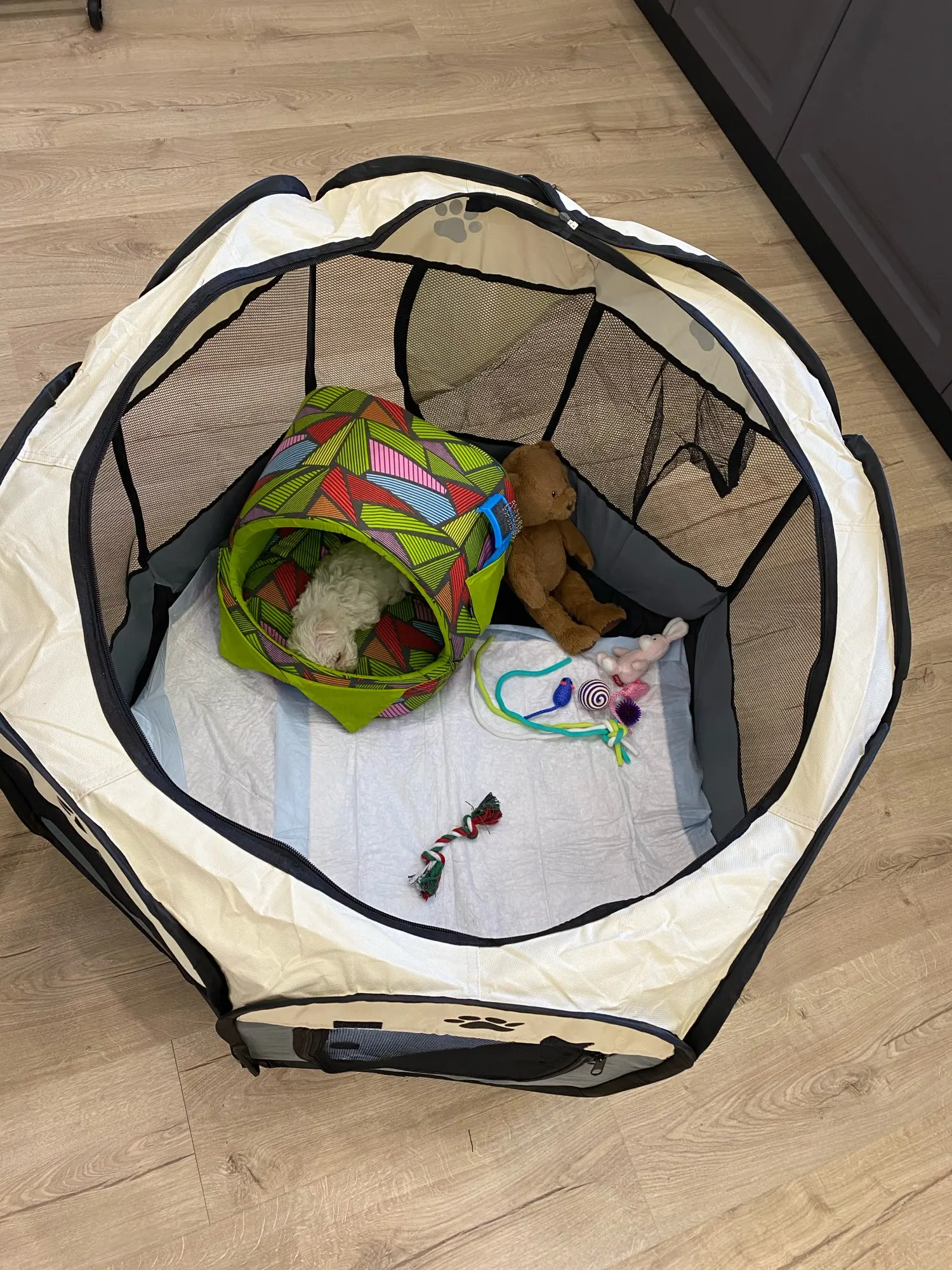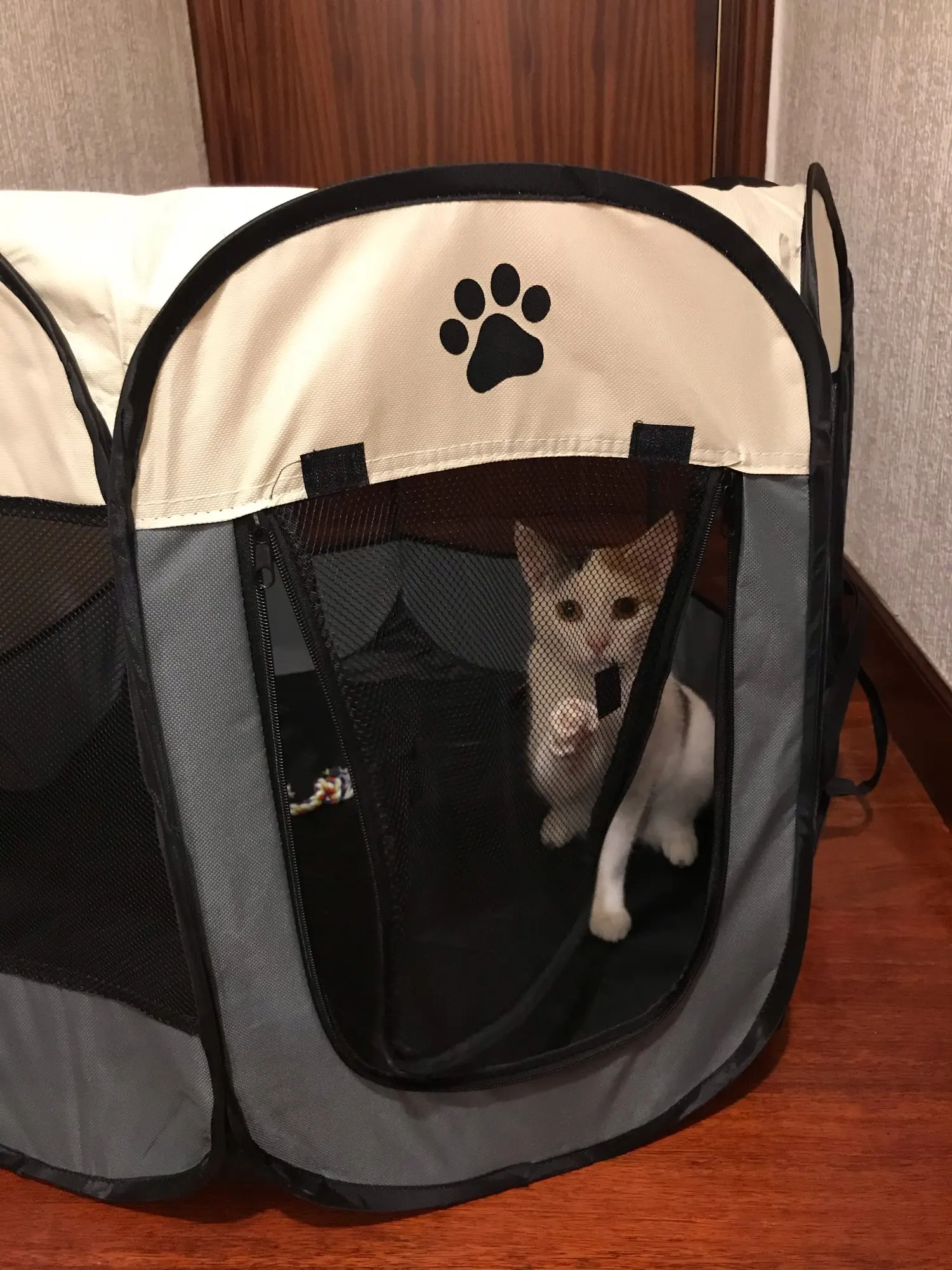Изделие абсолютно не подходит для щенка Изделие наклоняется при небольшом слегка резком движении щенка и, самое главное, сетка не является твердой. В трех целях, и есть большое отверстие в сетке двери, которое не позволяет мне использовать его закрытым. Я не рекомендую этот товар, чтобы его щенок мог спать.