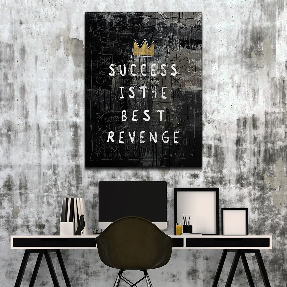 Картина на холсте, успех-лучшая мотивация мести, граффити, уличное искусство, Великая как бог, художественная стена с цитатой для домашнего декора