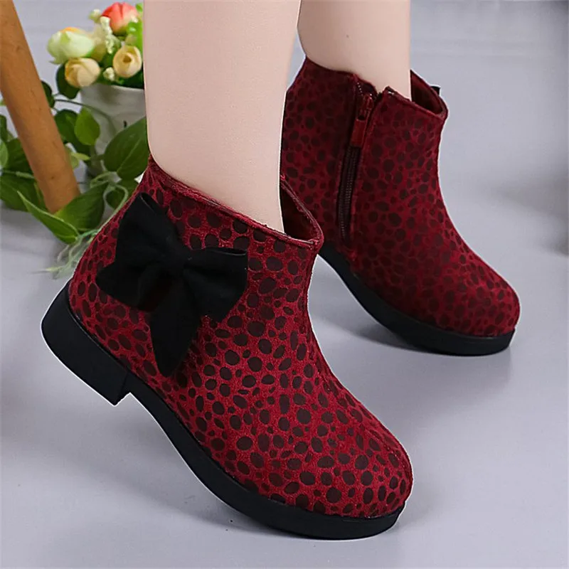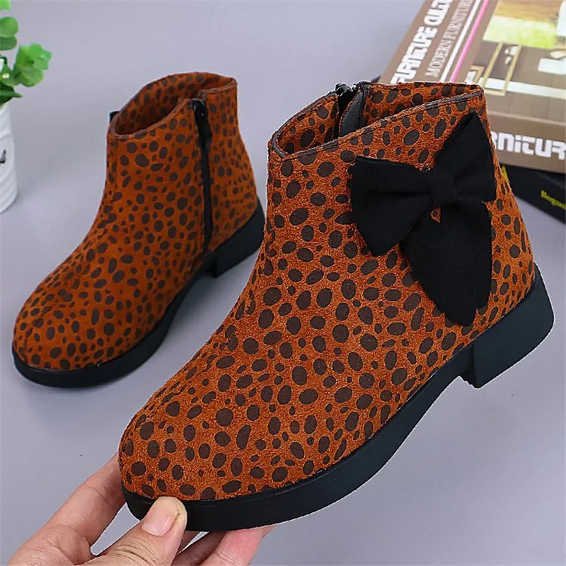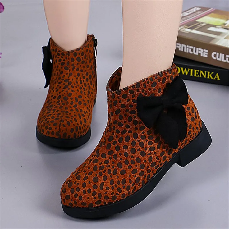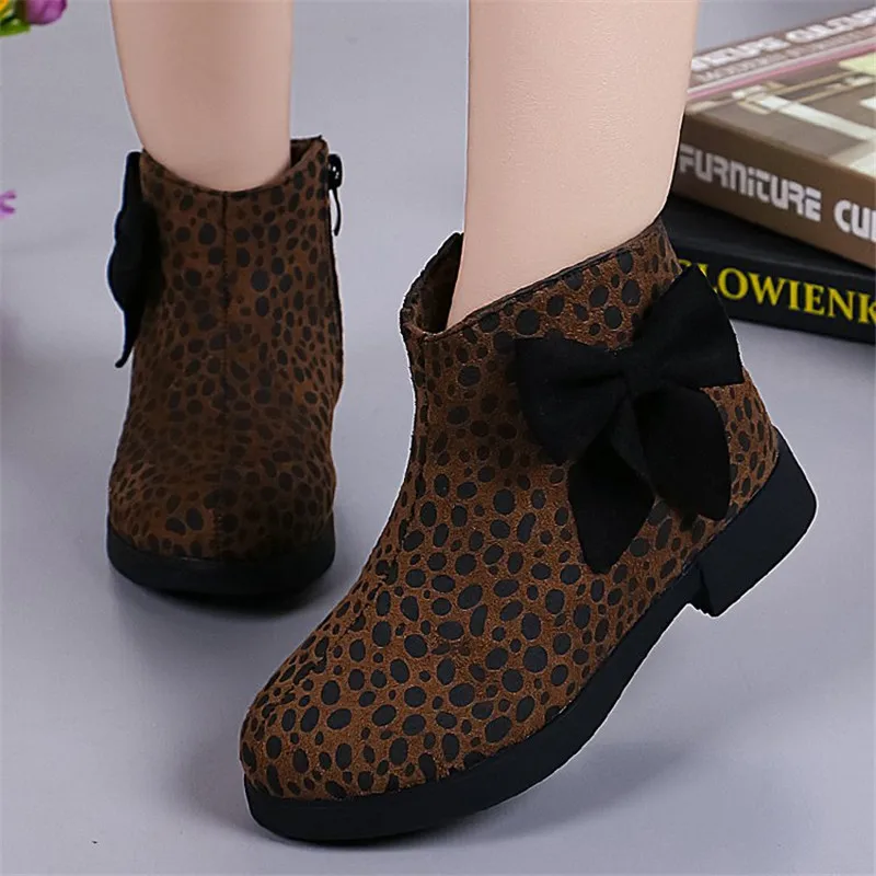 Ботинки детские зимние хлопковые с бантом и леопардовым принтом, для девочек