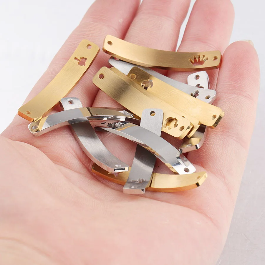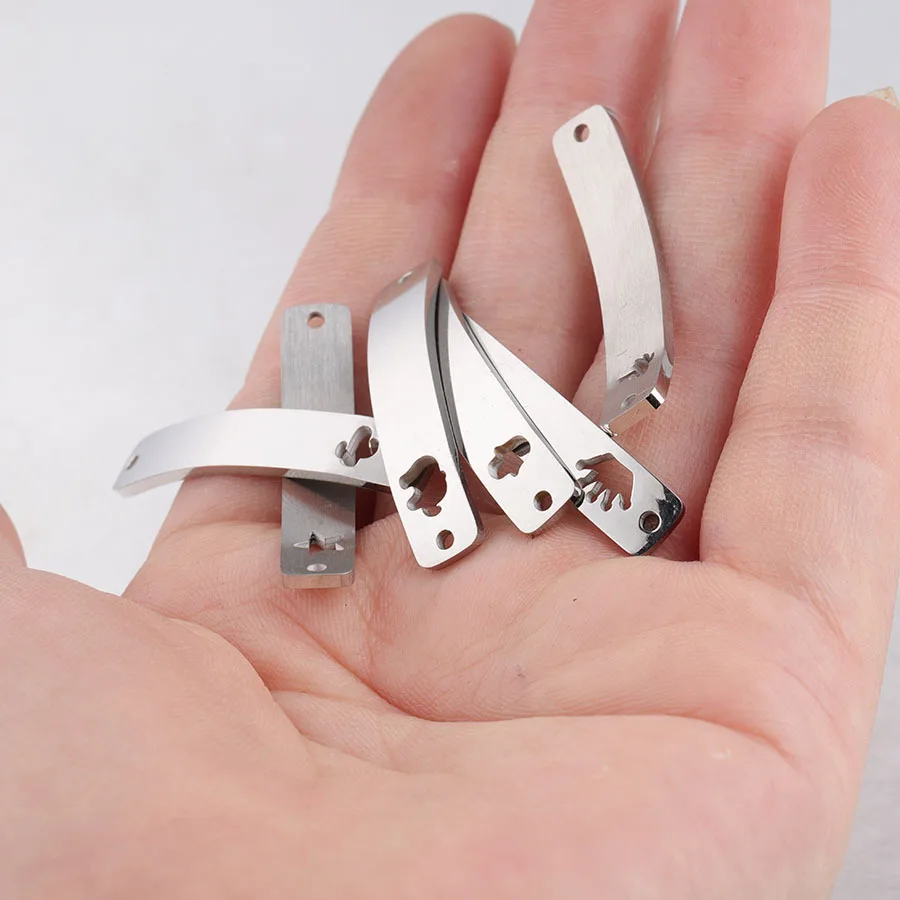 Серебро/золото нержавеющая сталь Пустой изгиб бар Шарм для гравировки 2 отверстия металлическая пластина для браслетов зеркальная полировка оптовая продажа 10 шт