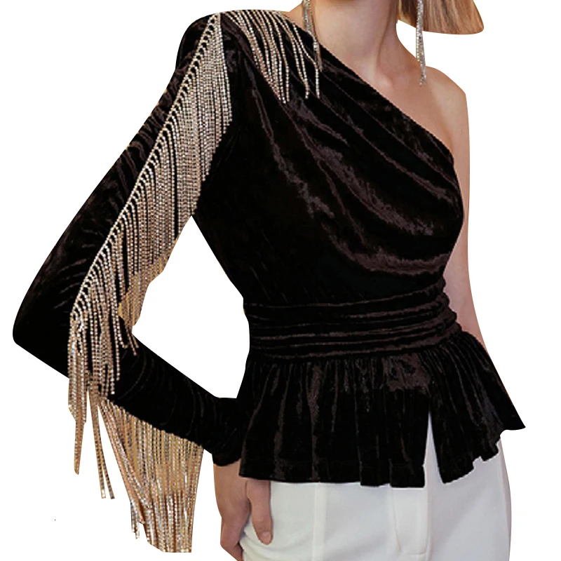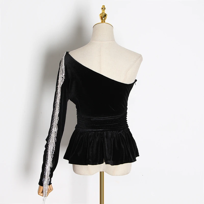 Женская фланелевая рубашка TWOTWINSTYLE, осенняя, белая, Лоскутная Блузка с одним открытым плечом и длинными рукавами, 2020