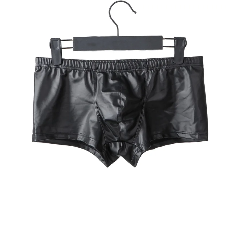 Трусы-боксеры мужские из искусственной кожи, черные нейлоновые, сексуальное нижнее белье, сексуальное нижнее белье для геев, 2019, размера плюс