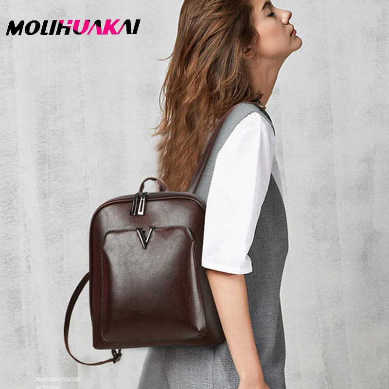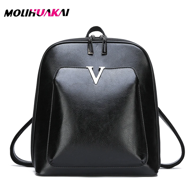 Женский кожаный рюкзак на молнии, Черный дорожный рюкзак для девочек-подростков, 2019