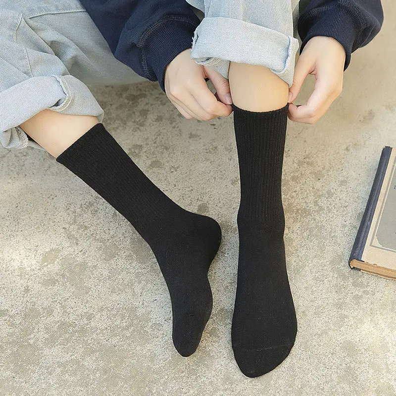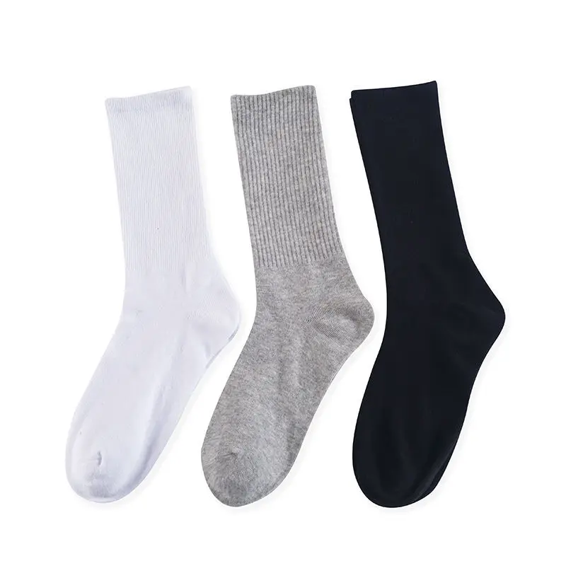 Носки Женские однотонные хлопковые в стиле унисекс, уличная одежда в стиле хип-хоп, Осенние вертикальные, черные, белые, серые, 102702