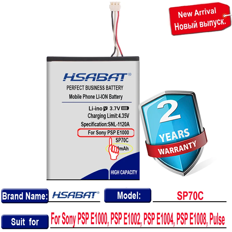 Аккумулятор HSABAT SP70C 2000 мАч для Sony PSP E1000, PSP E1002, PSP E1004, PSP E1008, импульсная беспроводная гарнитура 7,1
