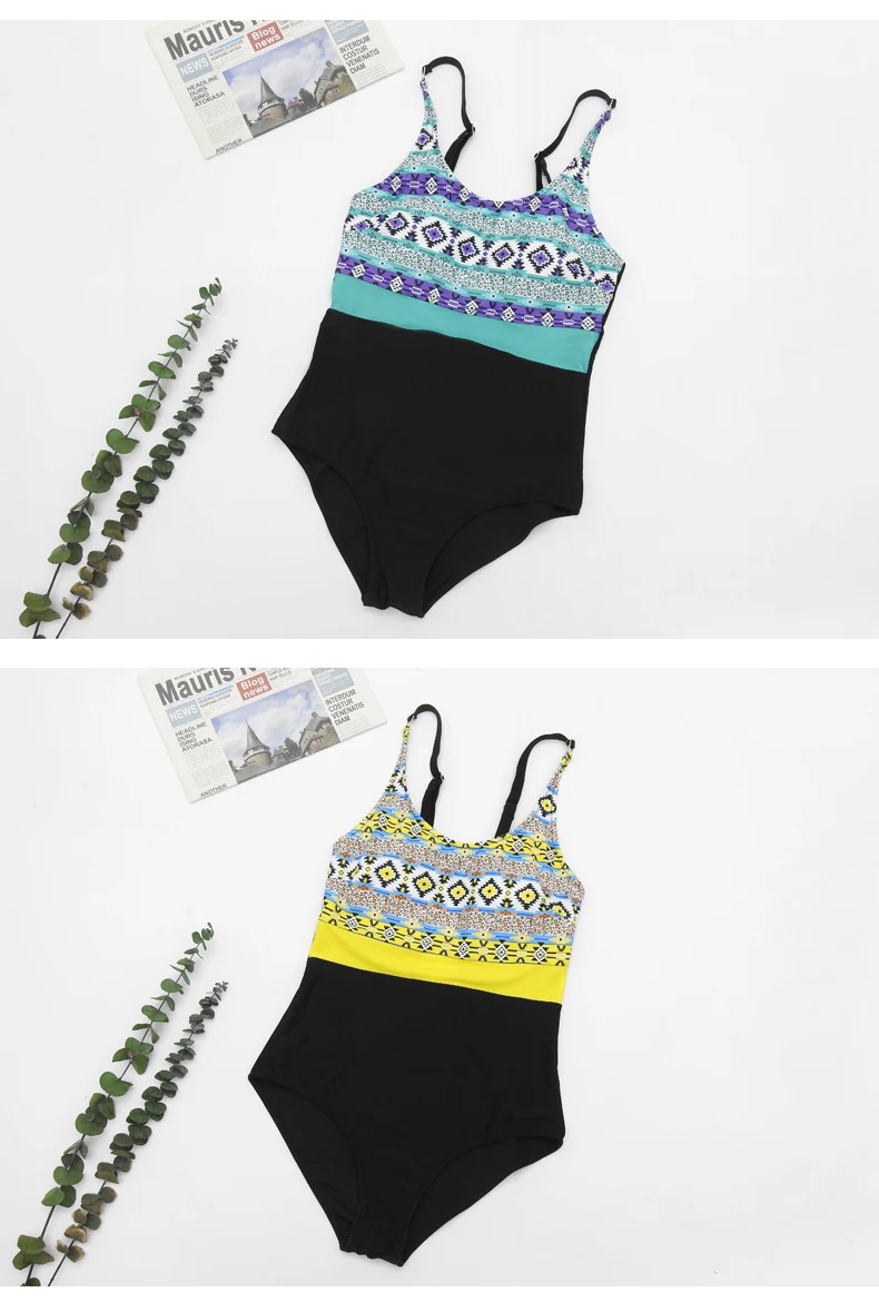 Соблазнительный слитный купальник в стиле пэчворк, закрытый женский...