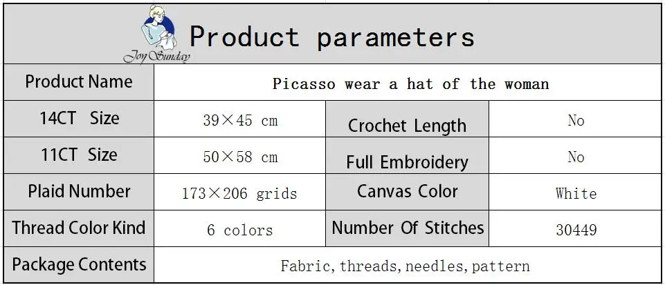 Joy Sunday Picasso надевал женский набор для вышивки крестом, шляпа DMC, рукоделие, Счетный Китайский Набор для вышивки крестом, Набор для вышивки
