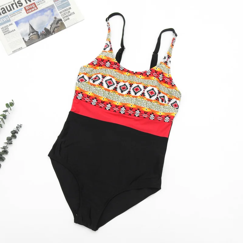 Пикантные цельные большие купальники с принтом закрытые женские куп...