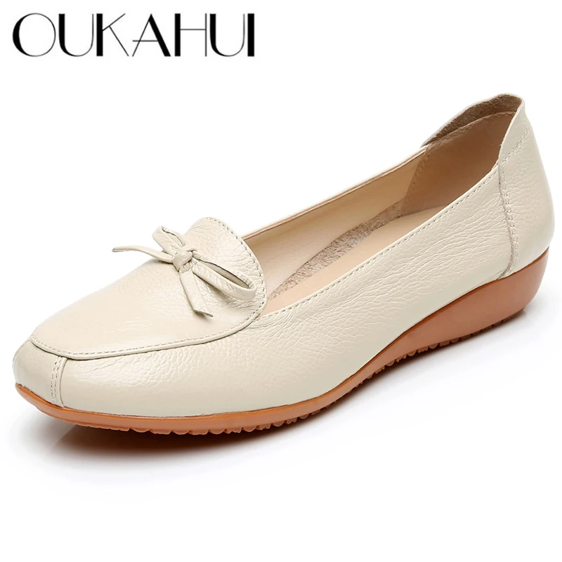 OUKAHUIразмеры 34-43; Весенняя Летняя обувь из натуральной кожи без застежки; Лоферы; Женские балетки на плоской подошве с бантом; Женская повседневная обувь