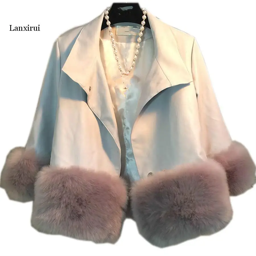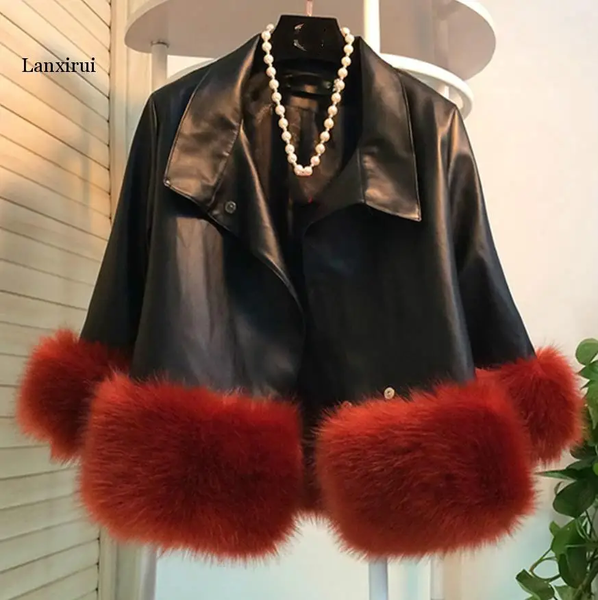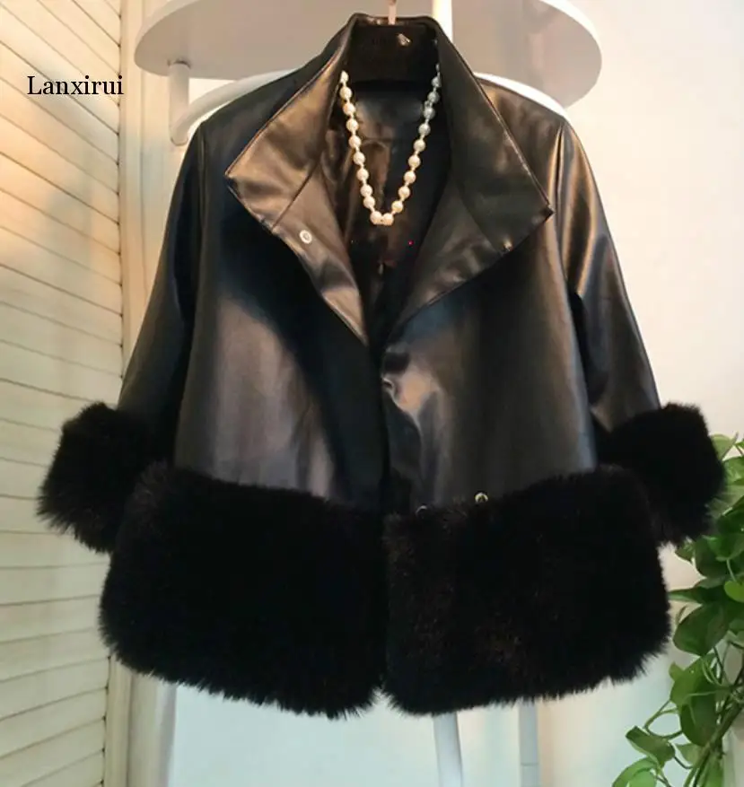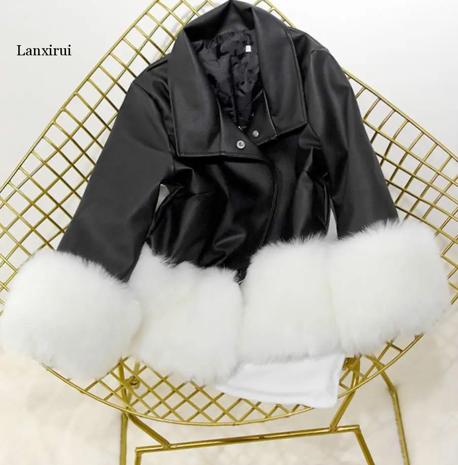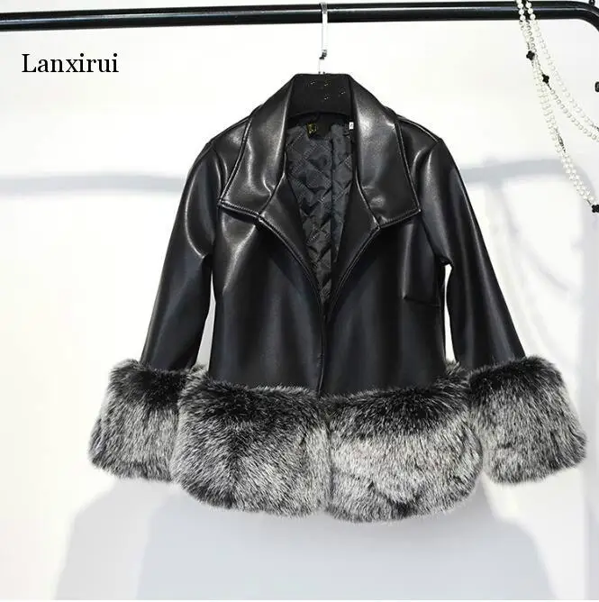 Размера плюс 3XL! Осенне-зимнее плотное пальто в стиле пэчворк из искусственной кожи, женское теплое короткое пальто из лисьего меха