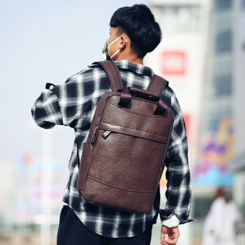 Рюкзак мужской из искусственной кожи, для ноутбука, коричневый, черный