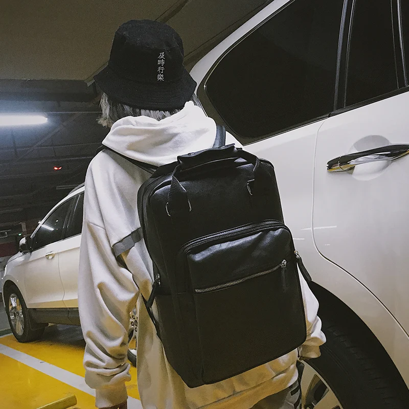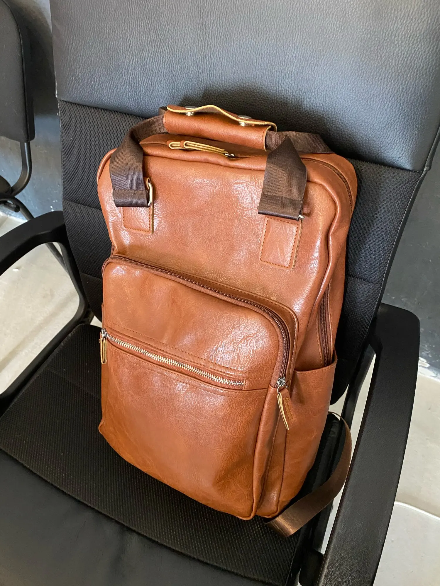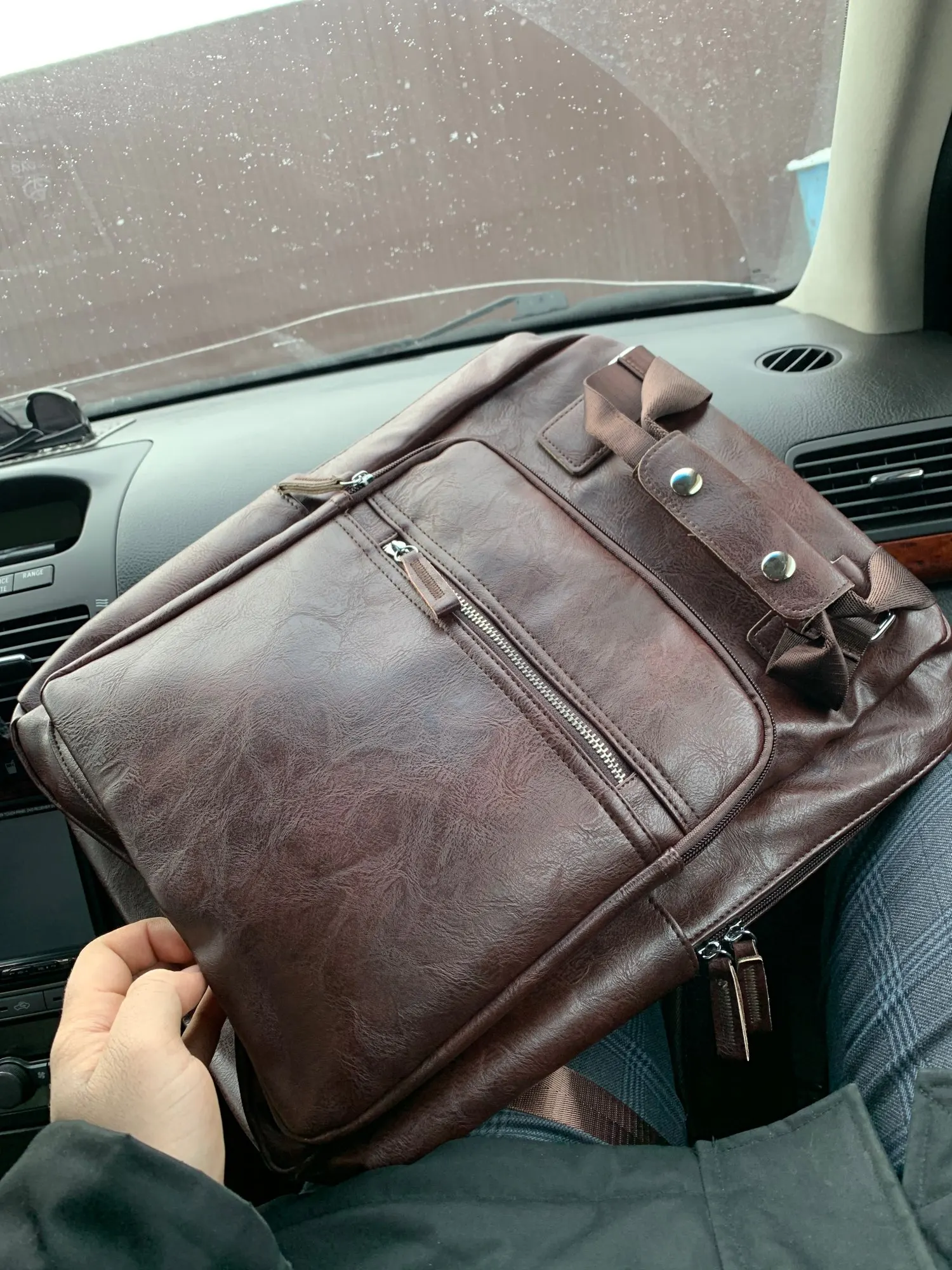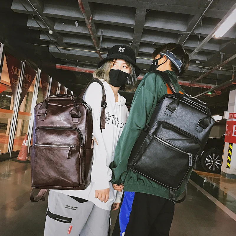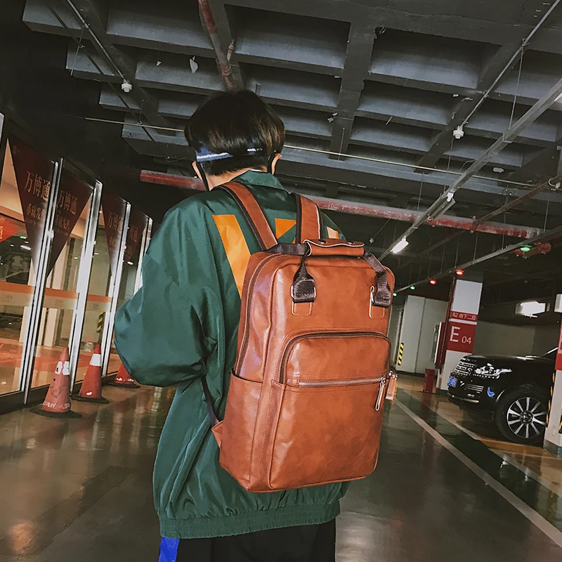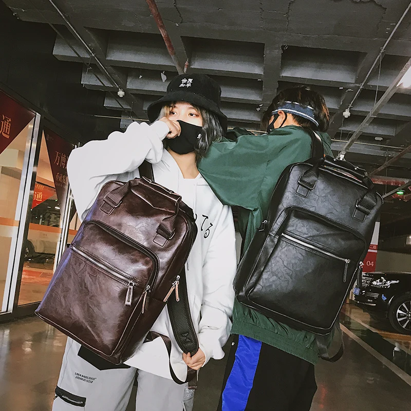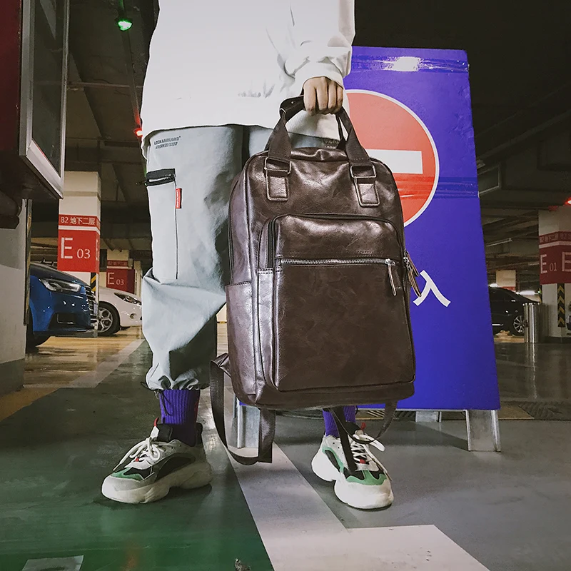 Мужской рюкзак из искусственной кожи, большой рюкзак для ноутбука, мужской рюкзак, повседневный школьный рюкзак для мальчиков-подростков, коричневый, черный