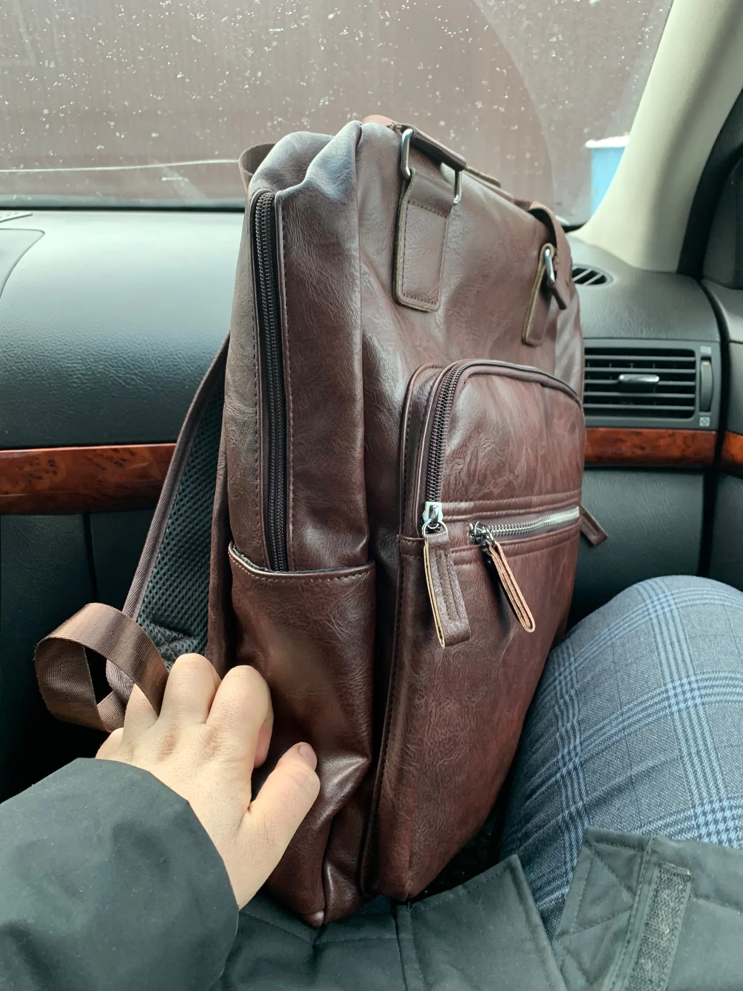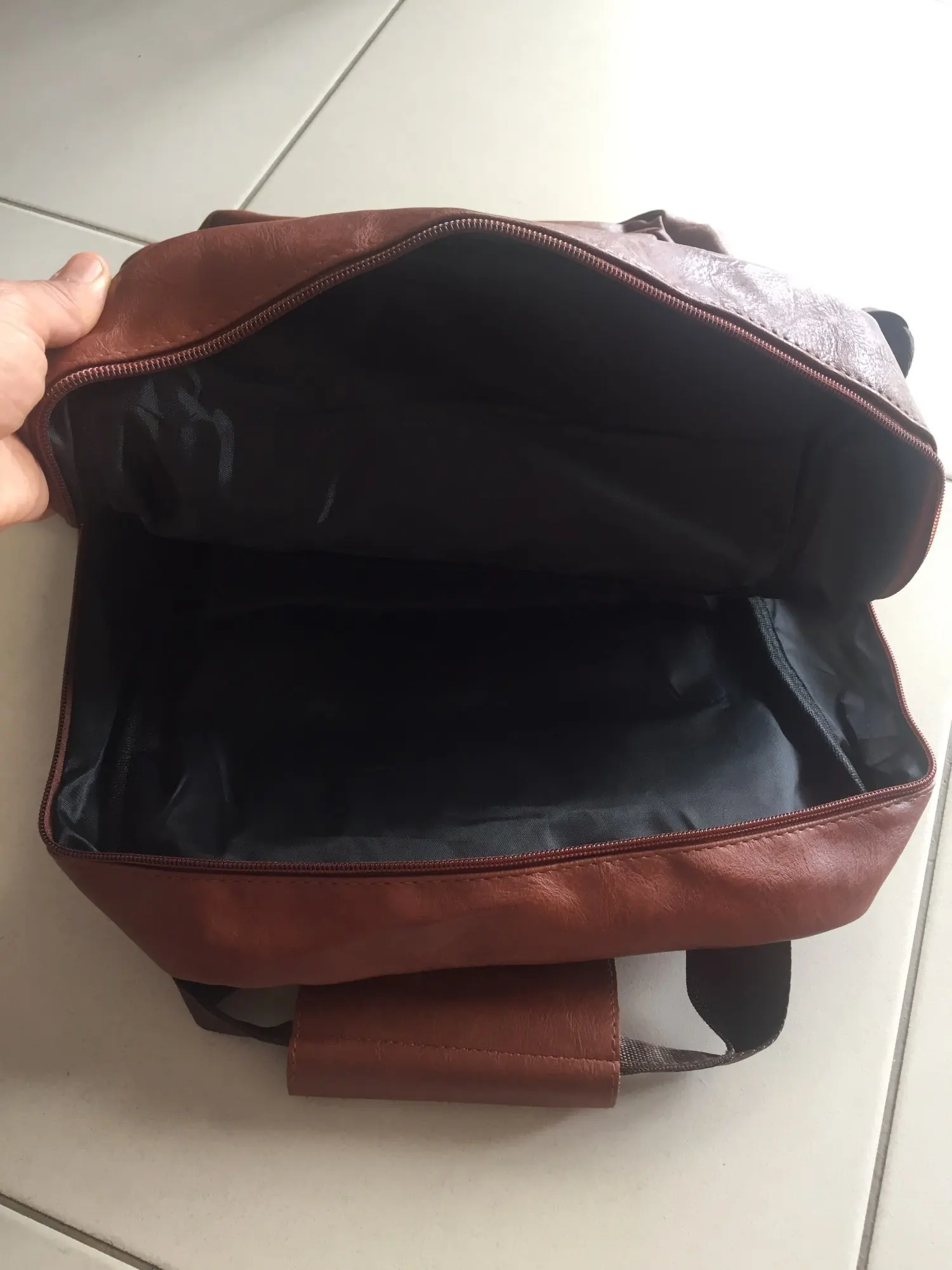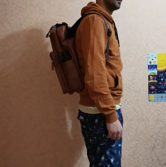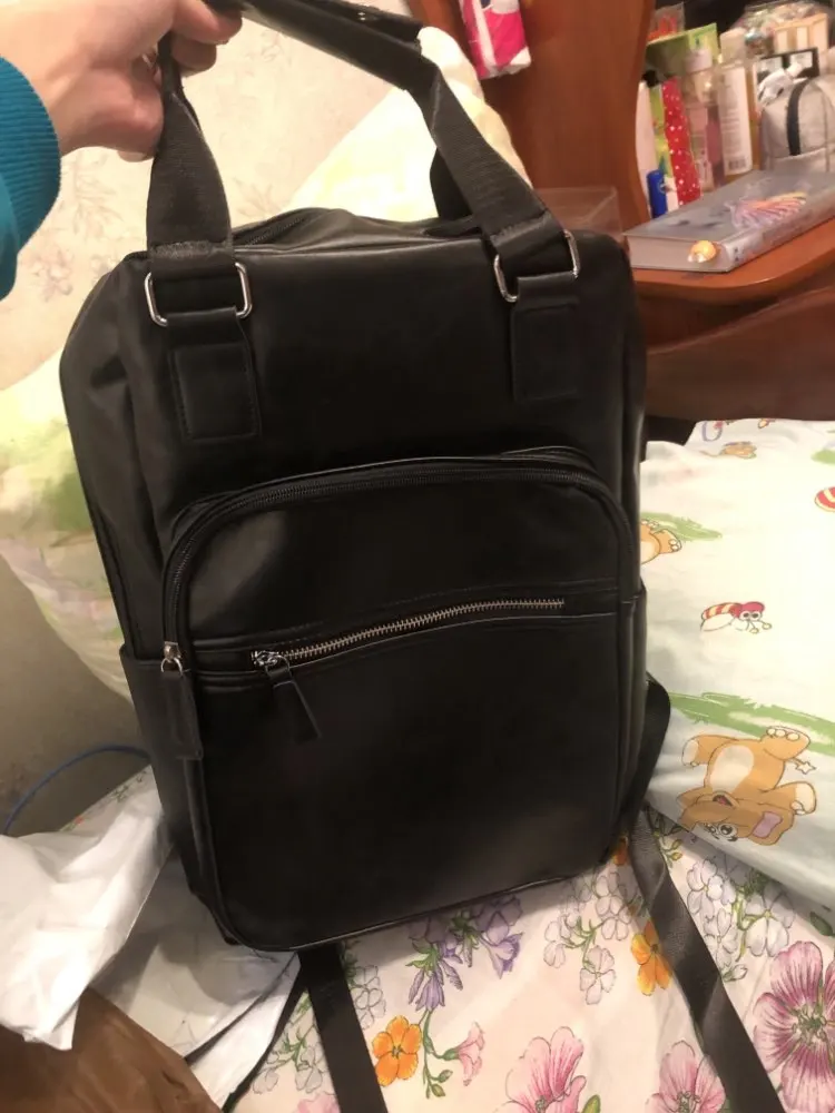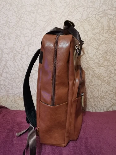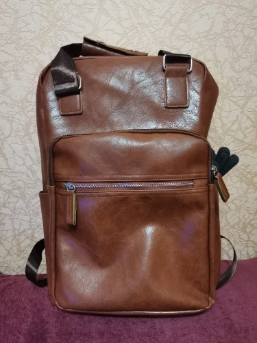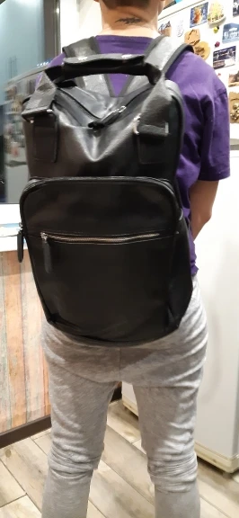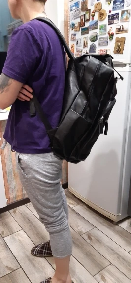 Хороший рюкзак из достаточно плотного кожзама, молнии все работают, нитки не торчат. Заказ продавец отправил быстро. Приехал рюкзак даже раньше предварительной даты прибытия. Единственный минус, как по мне - это меньшие внутренние карманы под документы - телефон. Еле еле паспорт вошёл с авто документами. А так все хорошо. Спасибо.