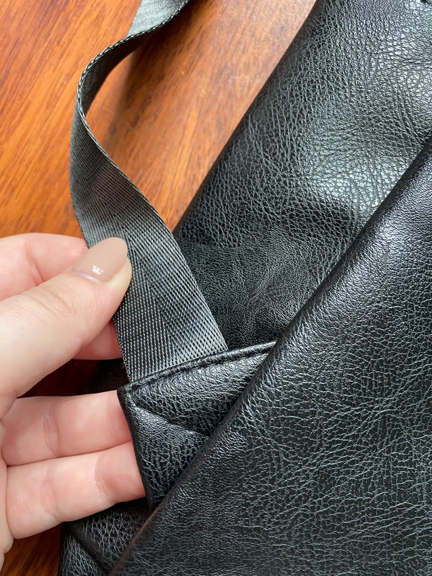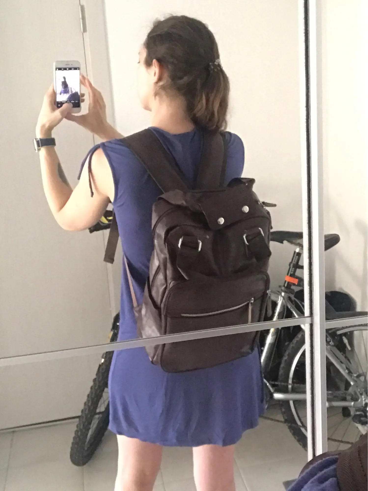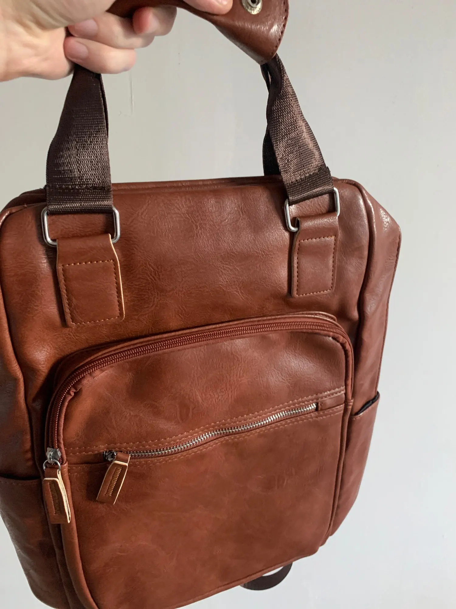 Хороший рюкзак из достаточно плотного кожзама, молнии все работают, нитки не торчат. Заказ продавец отправил быстро. Приехал рюкзак даже раньше предварительной даты прибытия. Единственный минус, как по мне - это меньшие внутренние карманы под документы - телефон. Еле еле паспорт вошёл с авто документами. А так все хорошо. Спасибо.