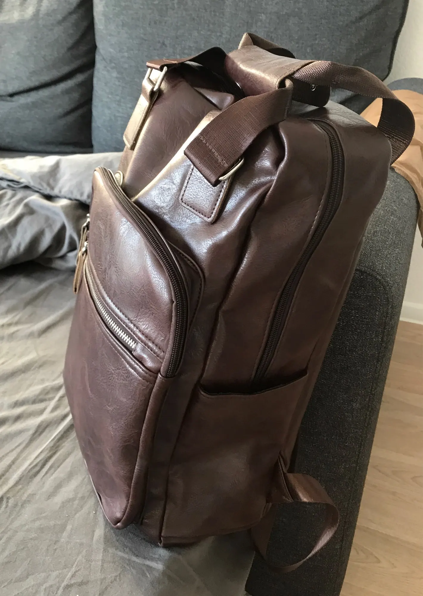 Отличный рюкзак-портфель. Добротно сшит, куча отделений, выглядит достойно, дороже, чем стоит на самом деле. Почта только российская расстроила, шел очень долго, валялся на сортировках неделями. На таможне тоже неделю. Но это не продавца косяк, а нашей российской службы доставки. Товар рекомендую!