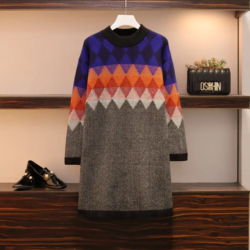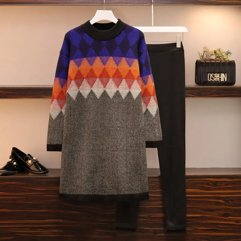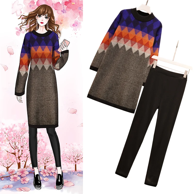 Женский трикотажный комплект из 2 предметов, свитер с длинными рукавами и узкие брюки-карандаш, большие размеры, корейская мода, 2019
