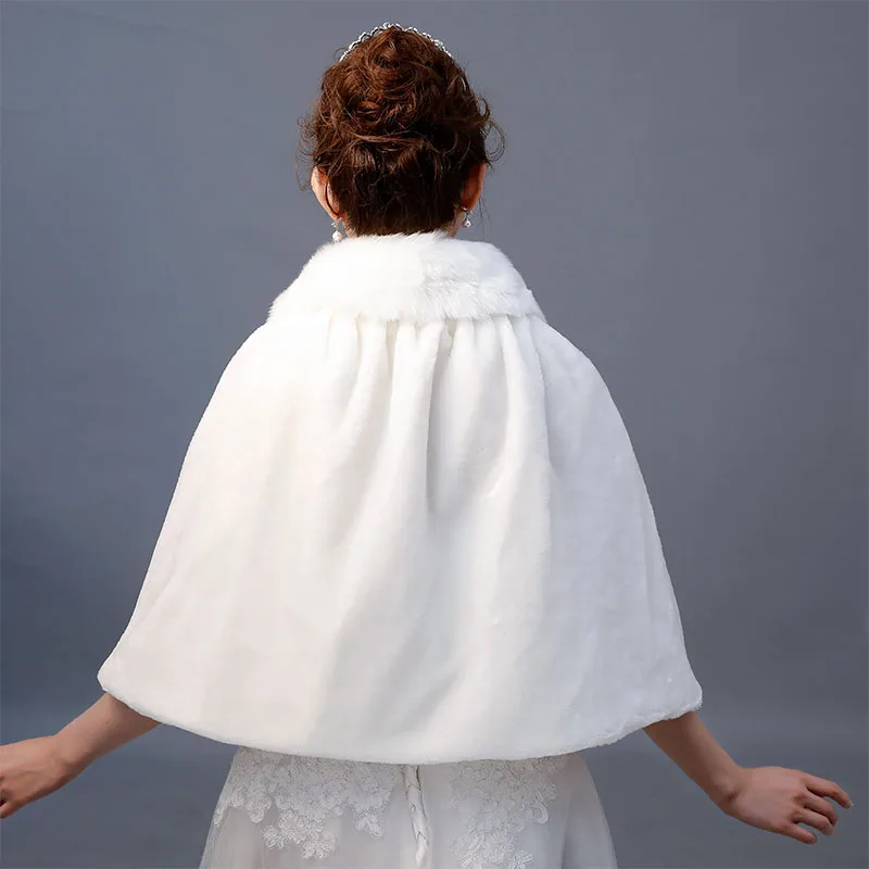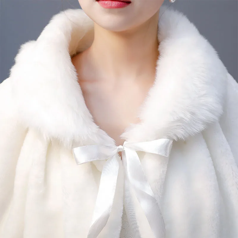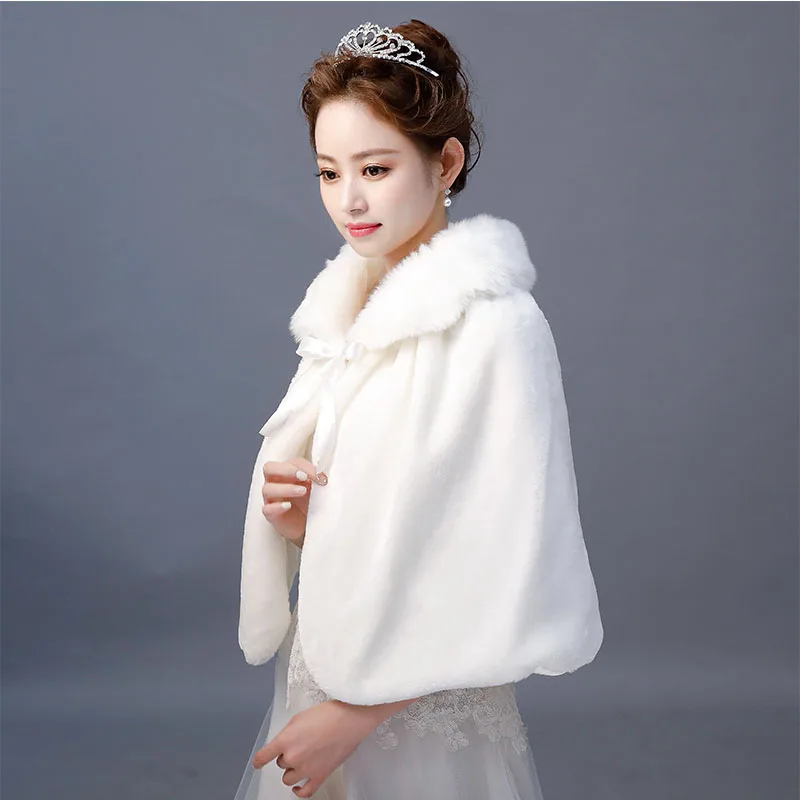 Женский Свадебный Болеро, зимняя шаль цвета слоновой кости из искусственного меха, Свадебные палантины, теплая шаль с ленточной накидкой