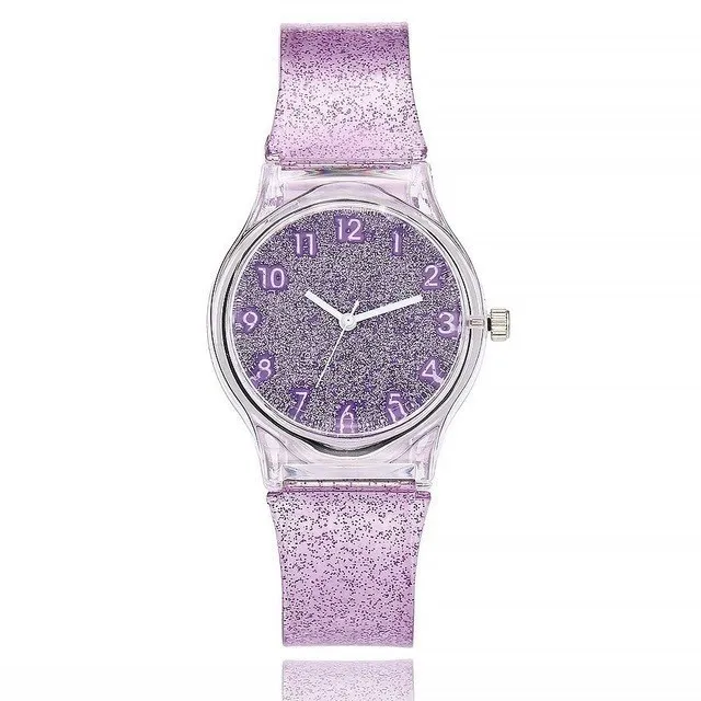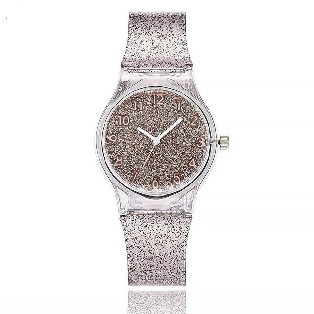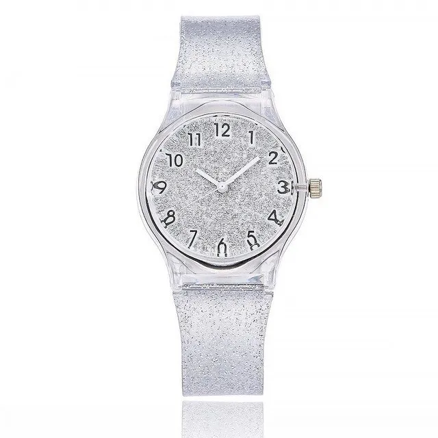 Женские наручные часы, силиконовые прозрачные часы с блестящим сили...