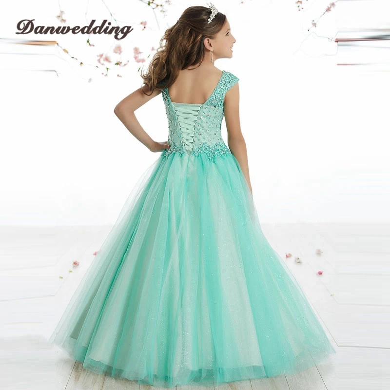 Милое Платье для девочки, с цветочным принтом, с фестончатым вырезом, из тюля, с бисером, детское праздничное платье для причастия, на шнуровке сзади
