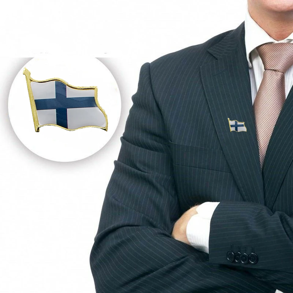 Финляндия развевающаяся значок булавки на лацканы Pin патриотический металлический костюм/шляпа/сумка отворот Pin