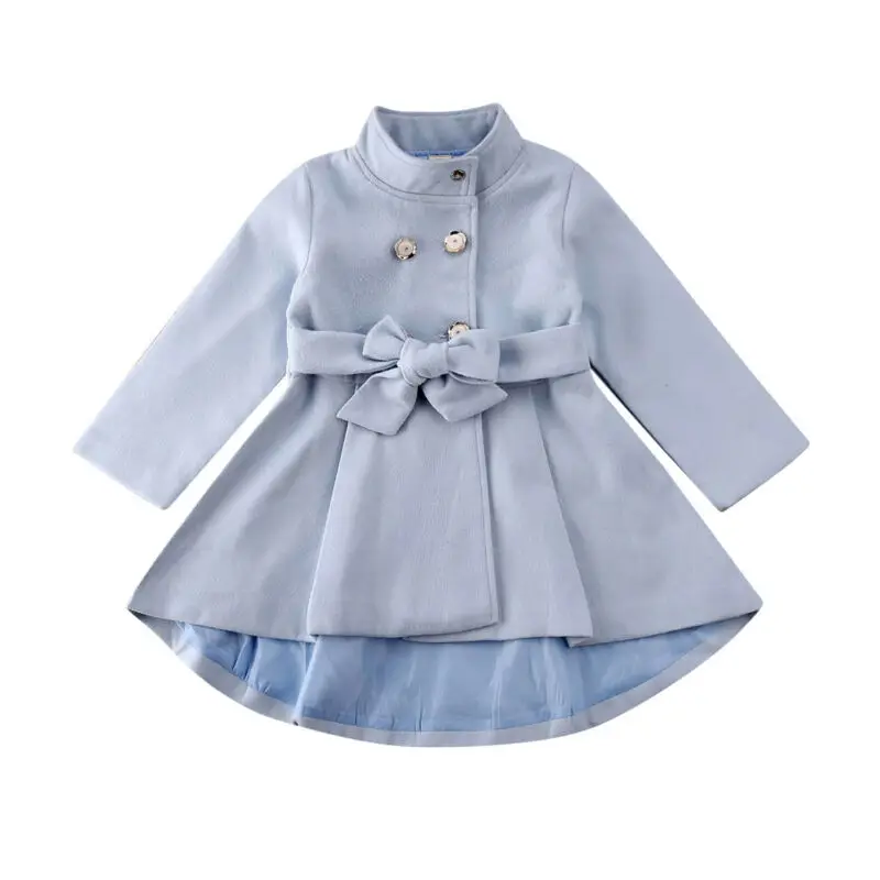 Детская ветровка с бантом, Однотонная синяя, осенне-зимняя, От 1 до 5 лет