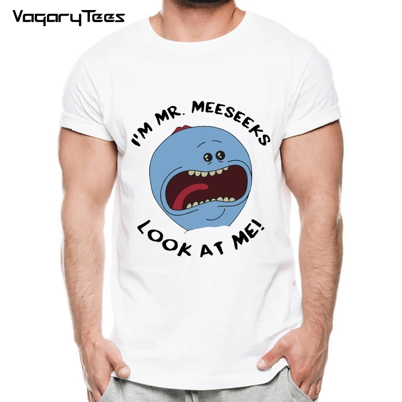 Забавная Футболка с принтом Happy Mr. Meeseeks Look At me, Мужская футболка с персонажами из мультфильмов, высокое качество, мужские хипстерские футболки, топы