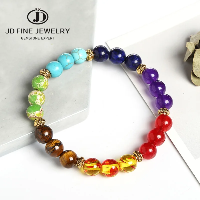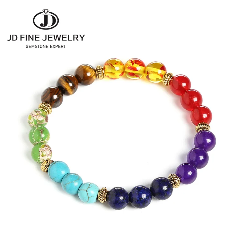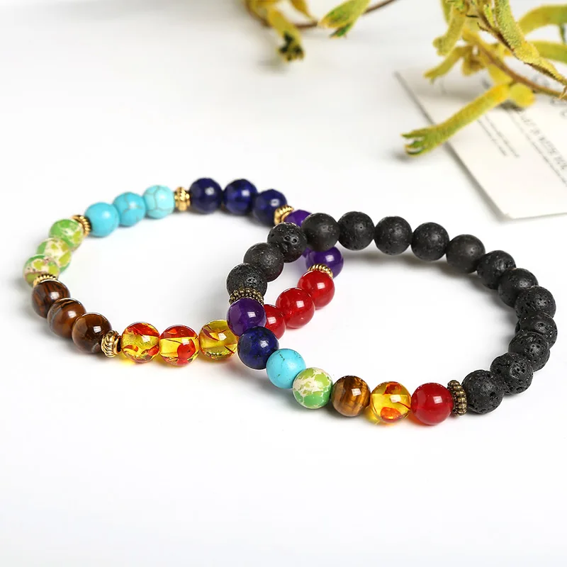 Модный браслет JD из 7 чакр, Мужская черная лава, Исцеляющие балансирующие бусины, молитва рейки Будды, женское ювелирное изделие