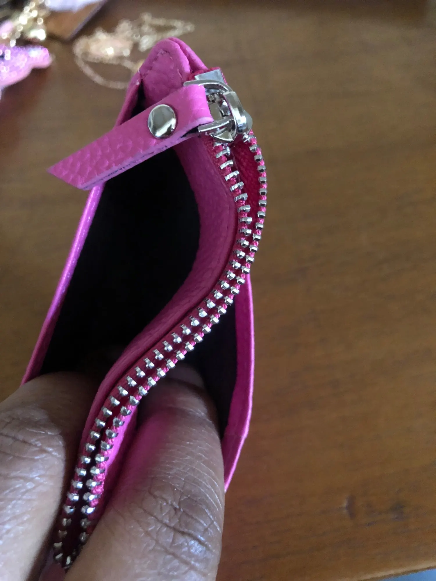 Заказывала 11.01 21 смс пришло 26.01.21 быстрая доставка (несколько товаров). Цвет rose red для меня это насыщенный розовый или цикломин) очень красивый и соответствует картинке. Внешне выполнен оочень аккуратно, швы прямые, приятный кож.зам., смотрится на 5+, но есть моменты, которые мне не понравились. Это сама молния, рабочая, металлическая, но самая дешёвая, ощущения, что можно порезаться. В отделении под молнией из подклада по длине торчит кожзам. Вероятно по этой причине на фото продавца этот момент не показан. И ещё... возможно если бы высота кошелька (или глубина, как хотите) была бы чуть меньше, то мелочь было бы удобнее доставать (может для этого не предназначен). И картон по обеим сторонам отделения под молнией не особенно нужен, по крайней мере удобства в этом нет. Но это не факт. Тем не менее внешне смотрится отлично. Продавцу спасибо)