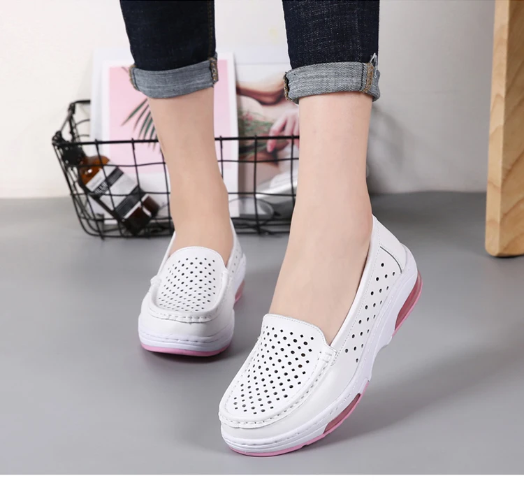 Туфли женские из натуральной кожи, летняя обувь для медсестер, качели, Рабочая обувь на танкетке со звездами, черные, белые, на платформе