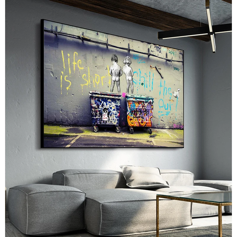 Граффити Бэнкси-стрит Жизнь короткая, охлаждение утки, плакаты и печать на холсте, картина на стену, картина для домашнего декора
