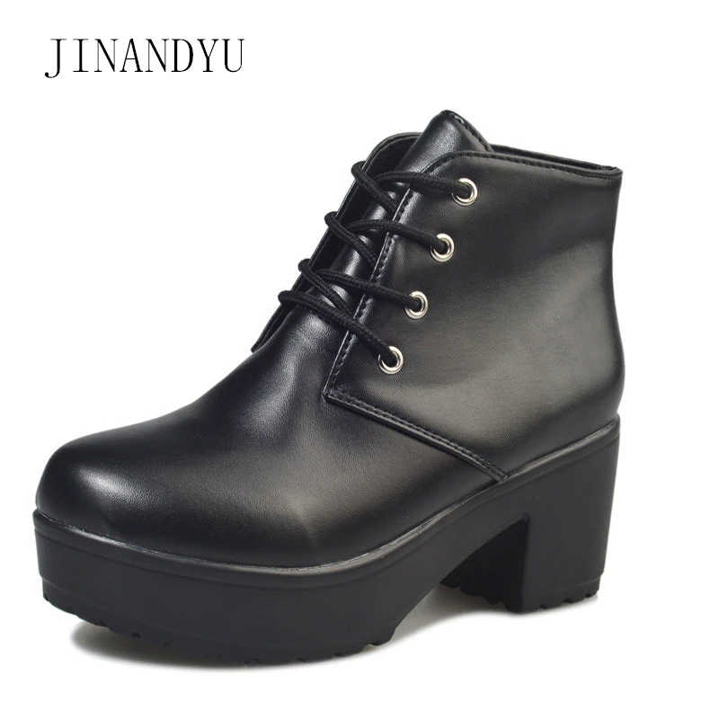 Женские короткие и толстые ботинки, женские ботинки на шнуровке, че...