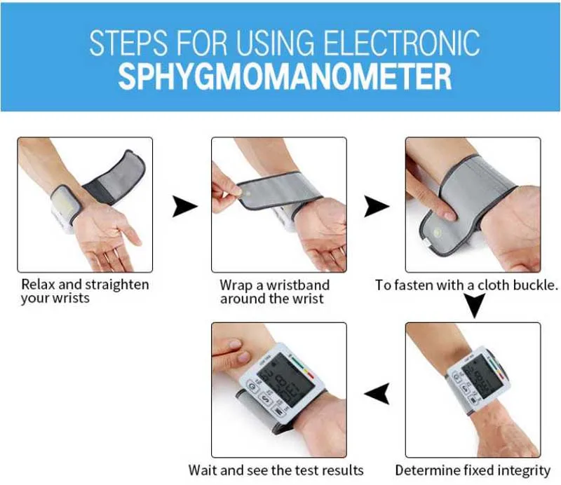 Сфигмоманометр Автоматический цифровой на запястье, тонометр для измерения артериального давления и пульса, устройство для измерения пульса