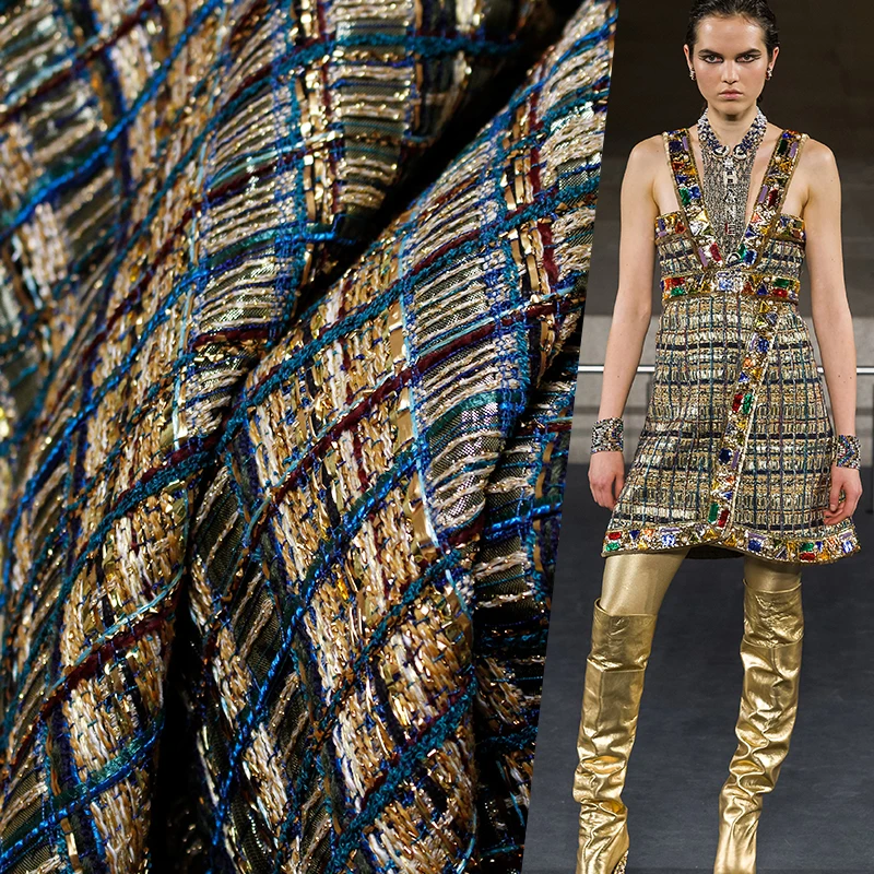 Ткань, французская Золотая твидовая ткань, осенняя куртка, платье, Женский текстиль, ткань для шитья, бесплатная доставка