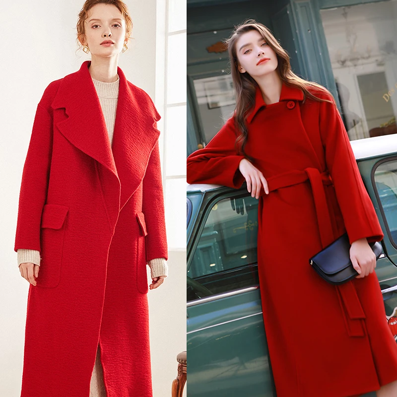 Ткань красная двусторонняя, 100% австралийская шерстяная ткань, зимнее женское пальто, бесплатная доставка