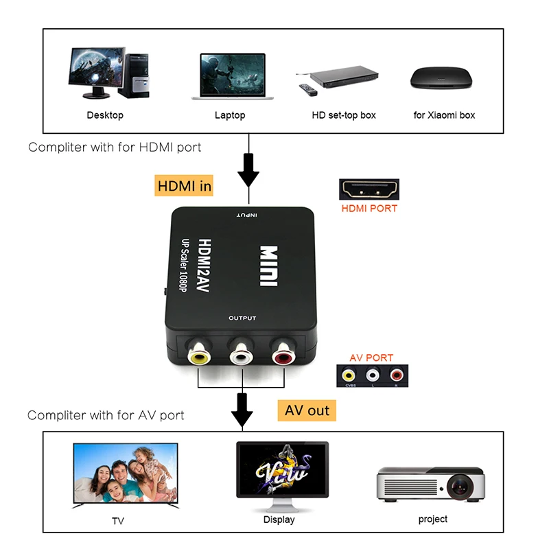 1080P мини HDMI к RCA AV композитный адаптер конвертер для ПК HDTV ...