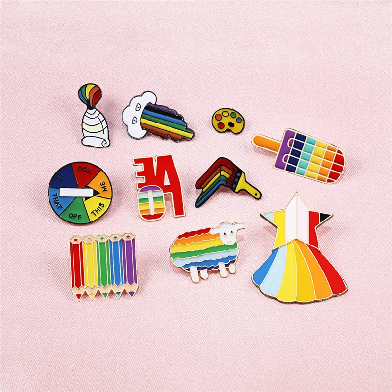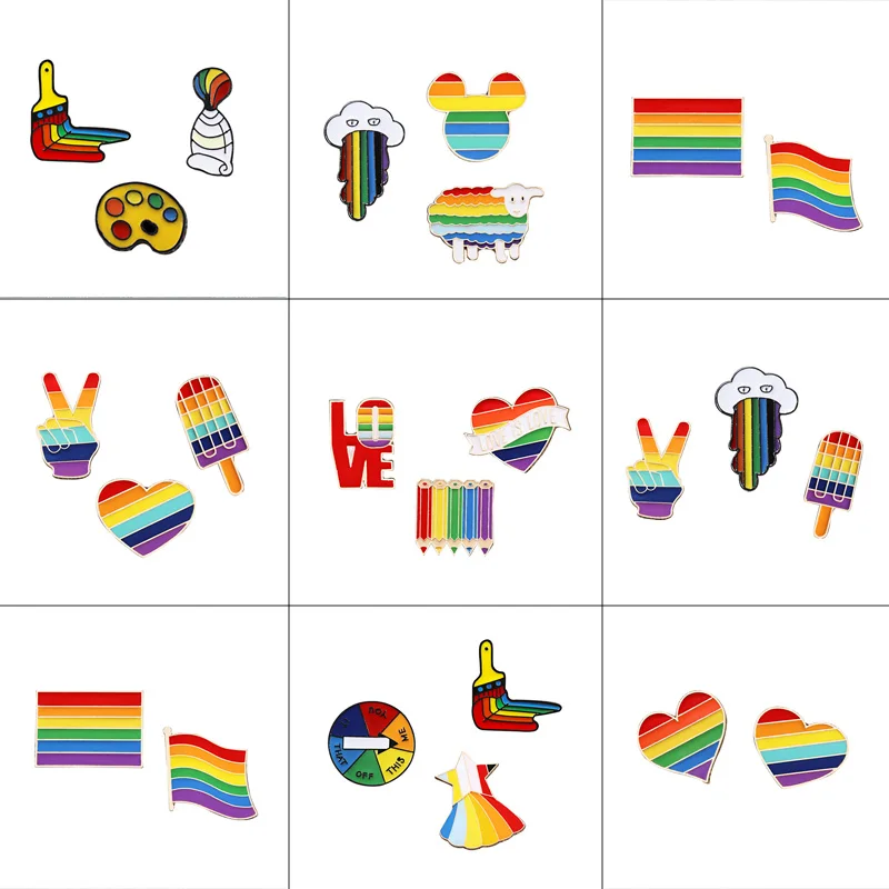 Набор брошей значков ЛГБТ дизайн радужные булавки мультфильм сердце палец флаг карандаш Альпака металлическая эмалированная булавка женские аксессуары для одежды