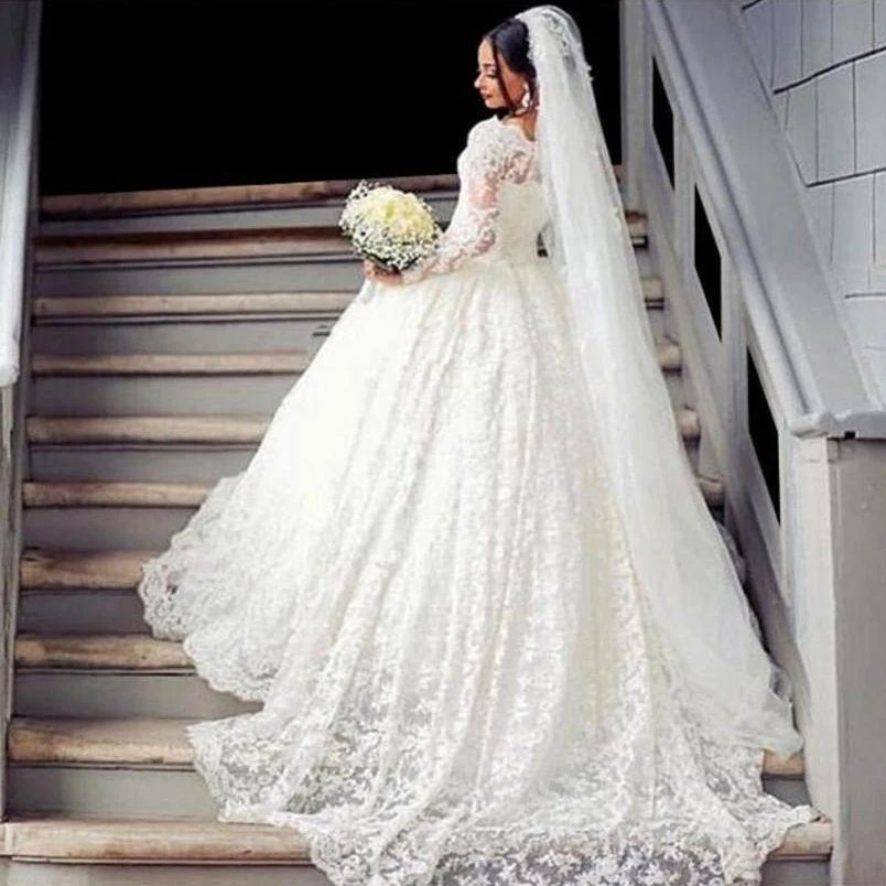 Люксовое винтажное романтическое кружевное платье для принцессы с длинными рукавами